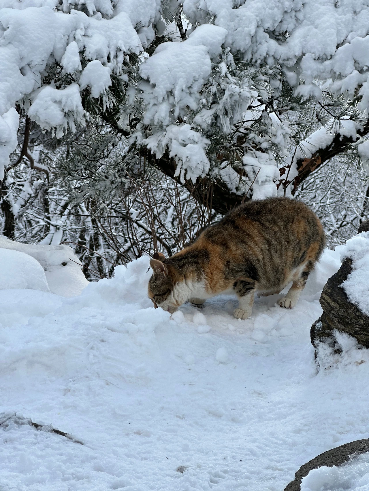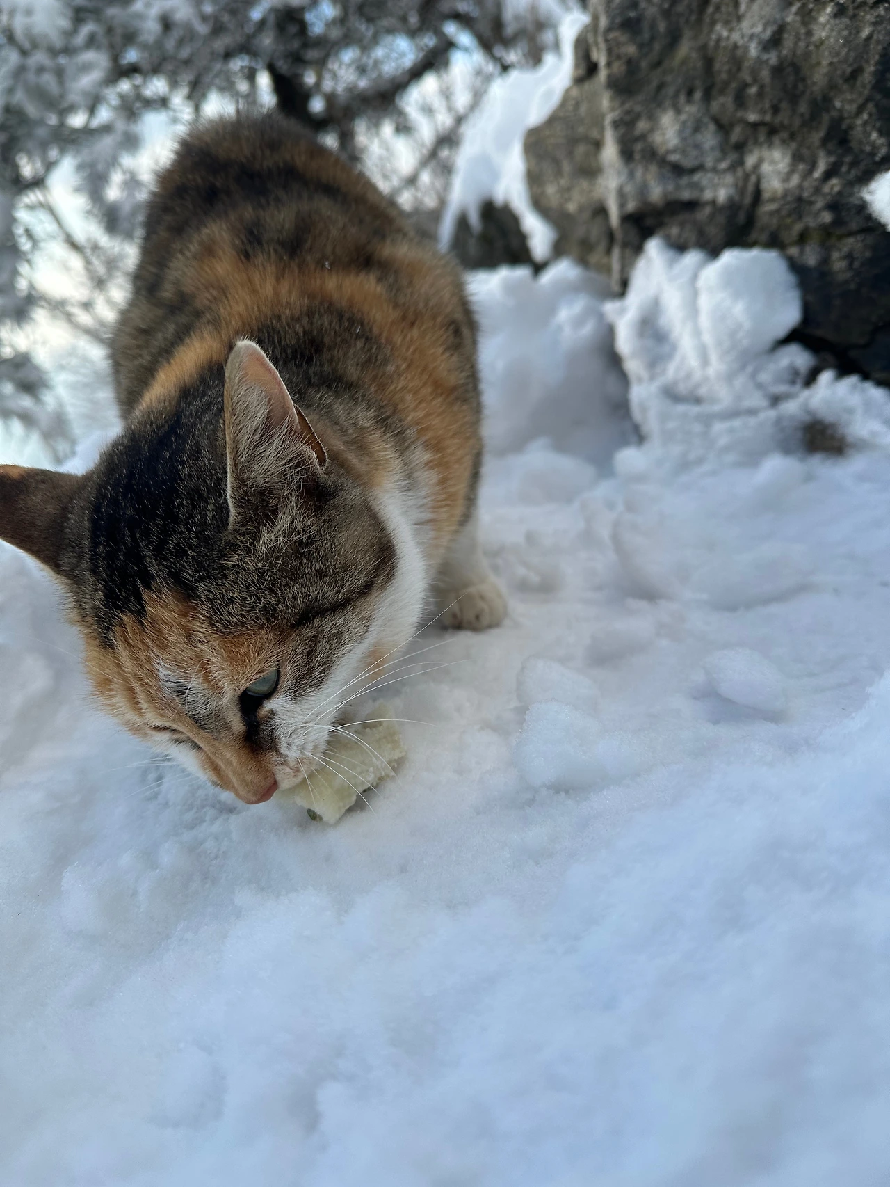 국사봉 사봉이(삼색이 종)를 오랜만에 조우. 만두를 조금 떼어주니 정말 잘 먹는다.