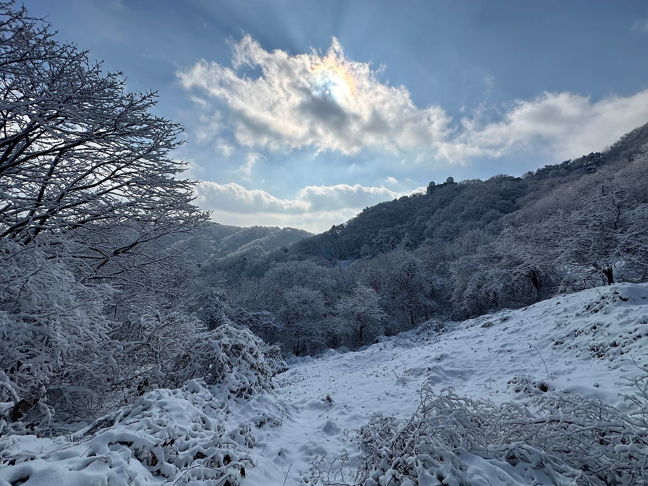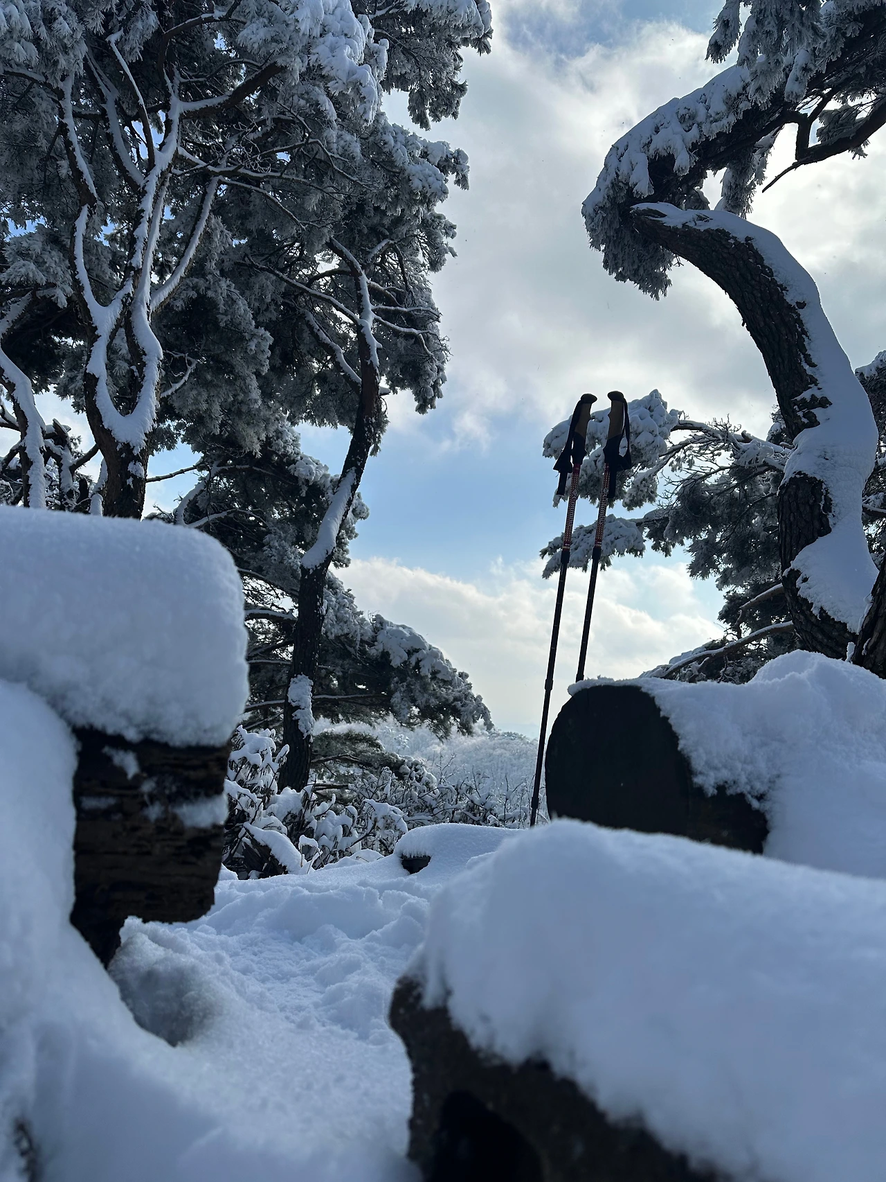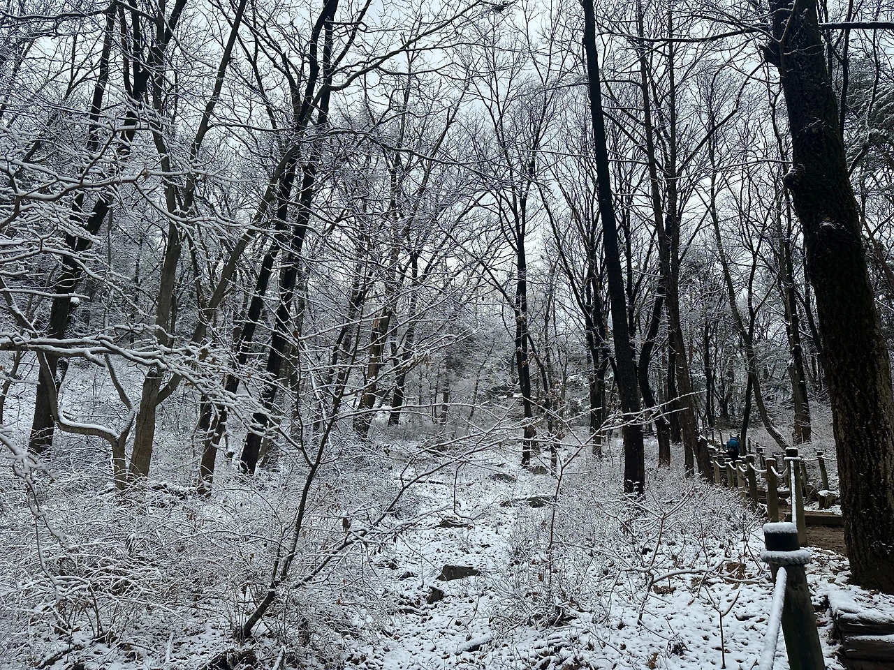 하얀 눈이 소복이 쌓여 있으나 선험자들의 발자국으로