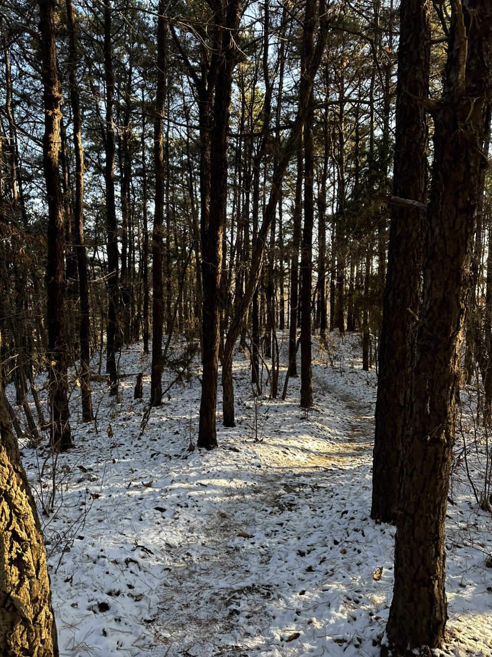 나 스스로의 마음을 다독이는 시간은 오로지 능선을 타고 걸을 때 인듯. 능선에서 만나 잠시 지나치는 사람들 사이사이로 불어오는 겨울바람. 관계도 리커버리 하라는 듯 꽤 매섭게 보챈다. 바람에 떨어진 나뭇잎은 눈아래로 가라앉았고, 얇게 펴바른듯 한 야자매트 위에는 쌓인 눈 위로 솔나무 잎만 누워있다. 그리고 나는 또 미끄러지지 않겠다고 솔나무 잎이 고맙다.