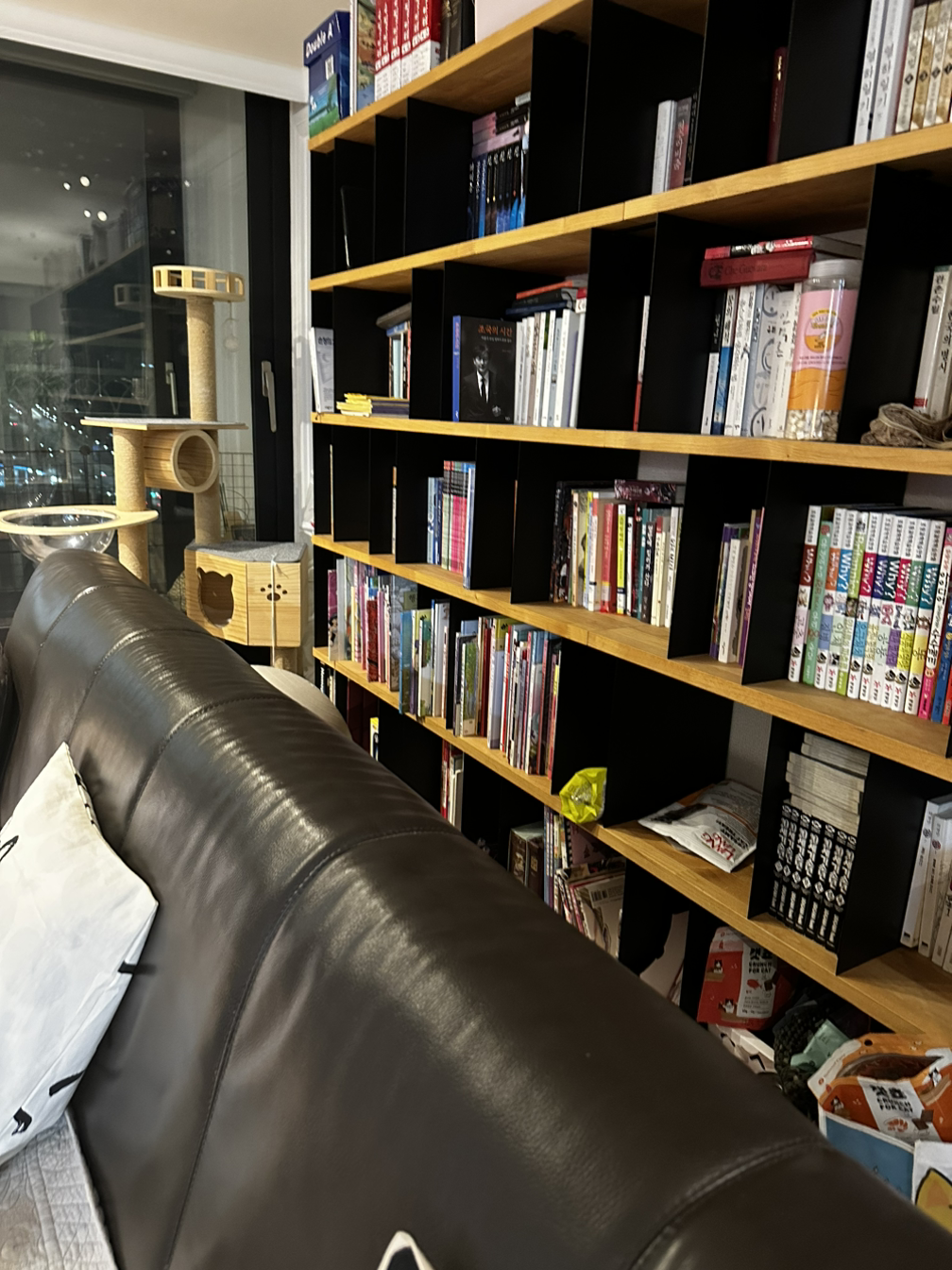 거실을 바라보고 길게 늘어섰으며 보리의 ㄷ 자 캣워크 동선을 완성했던 소파의 위치도 원복되었다. 아내의 주장은 명확했다. 보리의 털이 날리고, 해를 등지며, 쉬이 앉기에 동선이 멀다는 것. 크지 않은 거실에서 변명처럼 느껴질 수 있지만 나조차도 그랬다. 소파에 거의 앉지 않았다. 독서도 책상에서, 잠시 휴식도 책상 앞 의자에서. 딸아이와 아빠의 의자는 있지만 엄마의 의자는 없었다. 소파도 저 멀리. 그렇다고 식탁이 엄마의 의자여서는 안 된다. 해서 아내의 의견을 그대로 받아들이고 소파는 원복 시키되, 보리의 여러 보금자리들은 창가로 옮겨주었다. 보리도 좋아하는 눈치다. 어릴 적 원형 안락공간에 자주 들어가 자는 걸 보면.