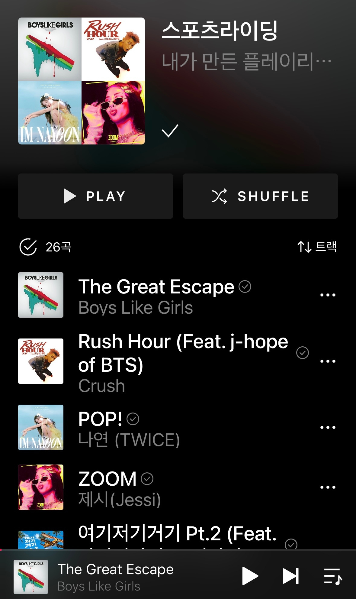 제이홉이 피처링해서 더 유명한 곡. 느린 비트 속에서도 흔들림 없는 패턴에 심취하기 좋은 곡이다. 라이딩 시작과 종료 즉 워밍업과 쿨다운에 좋은 곡이다.