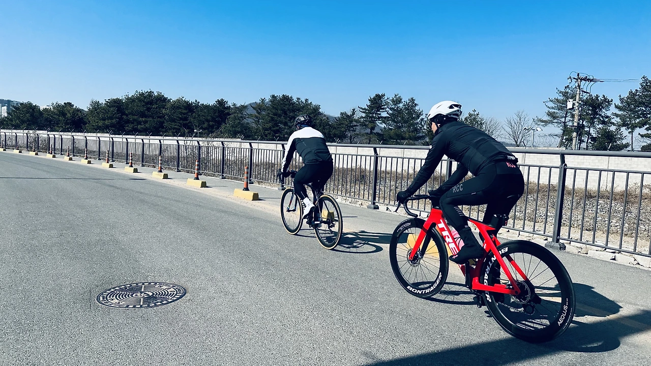 오늘은 이 기준에 맞추어 탔다. 절대 이너에 두고 속도는 25에 맞추어 달린다. 바람은 계속 저항값으로 직용하고 있으니 한 두 번은 로테를 뛰었고 얕은 업힐을 캐이단스로 오른 후 중간휴식과 돌아오는 길엔 향 좋은 아메리카노에 담소도 나누었다.