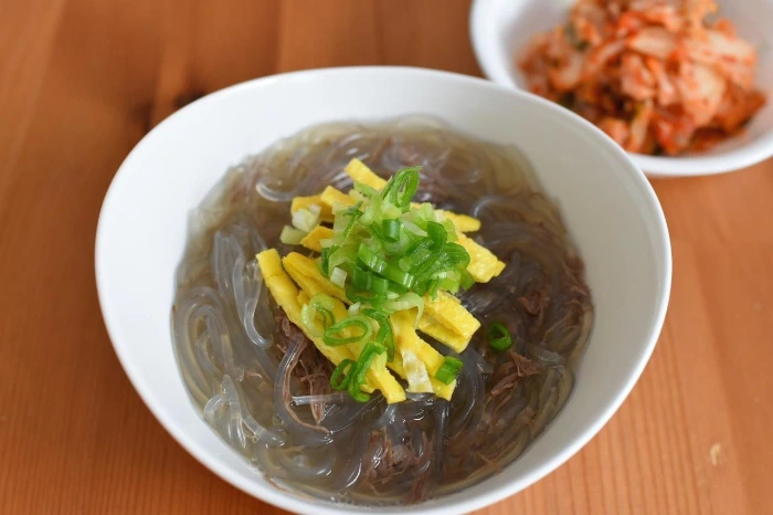 7. (당면을 넣을 경우) 당면을 물에 충분히 불린다. (30분 이상 불려서 부들부들해져야 국물에 넣고 끓일 때 국물 양이 졸아들지 않는다.)