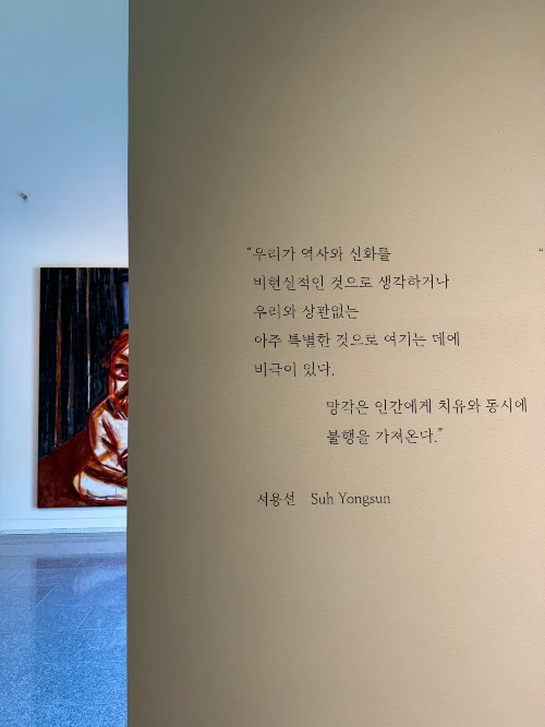 작가 서용선은 “우리가 역사와 신화를 비현실적인 것으로 생각하거나 우리와 상관없는 아주 특별한 것으로 여기는 데에 비극이 있다. 망각은 치유와 동시에 불행을 가져온다. “라고 말했다.