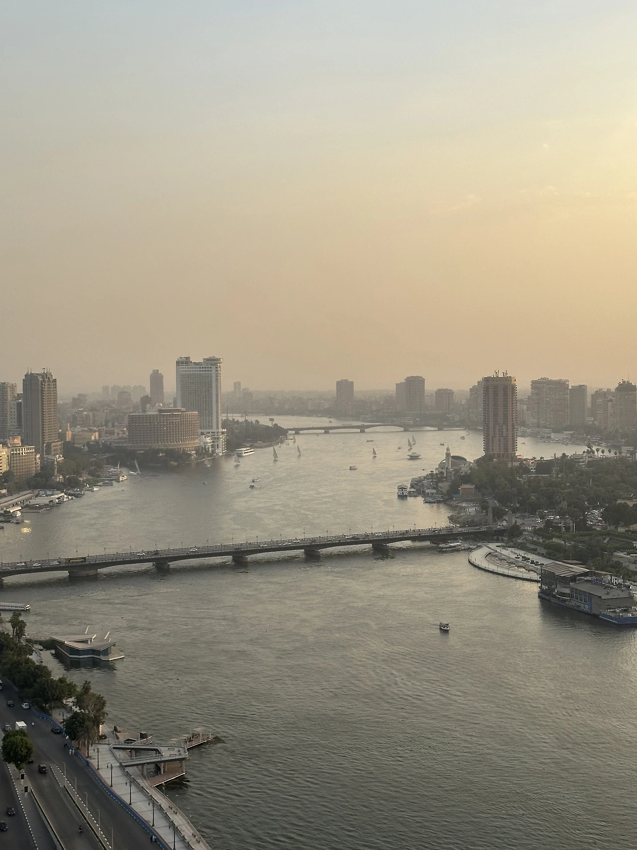 사실 너무 씻고 싶어서 그냥 빨리 보내줬음 좋겠다 했는데 방이 너무 넓고 좋았다!! 방값이 비싸서 스탠다드로 예매했던 것으로 기억하는데, 아마 업그레이드 해주신 것이 아닐까….불쌍한 신혼부부로 본 것 같다(어쩐지 보시면서 자꾸 웃으시더라..). 고층이라 창 밖에는 뿌연 회갈빛 빌딩들과 나일강이 펼쳐져 있었다. 그리고 창을 닫아도 들려오는 빵빵소리를 배경으로 냅다 씻고 잠시 잠을 청했다.
