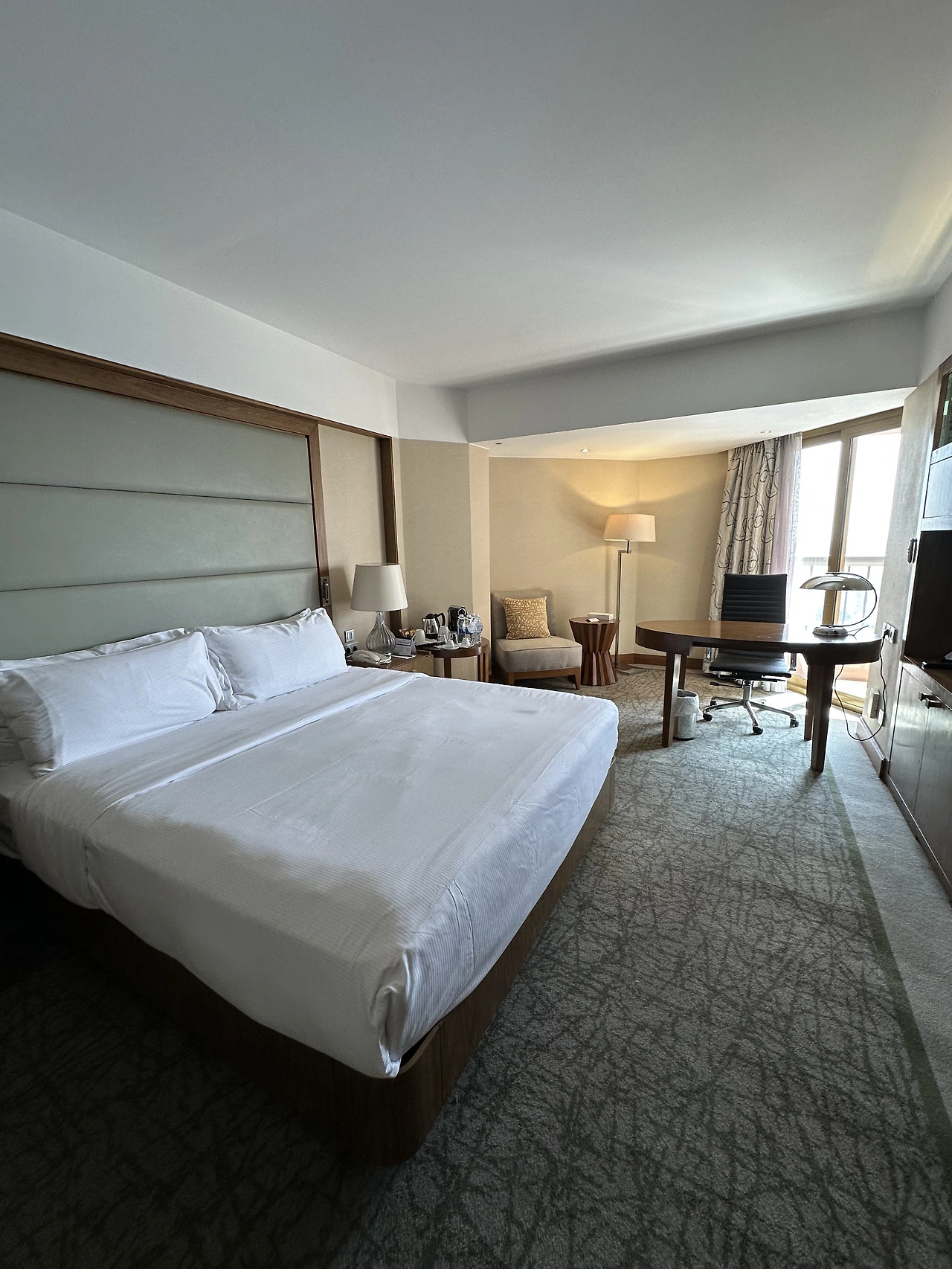 1박 2일 씻지 못한채로 머리는 둘 다 노숙자처럼 번들번들하지, 택시 잡느라 이리뛰고 저리뛰느라 정신은 나갔지, 호텔 체크인을 하는데 둘이 넋이 나가서 기다리는데 진짜 불쌍해보였던 것 같다. 매니저로 보이는 분이 다가와 따로 체크인해주시겠다고 해서 너무 행복했다. 그런데 그분이 체크인 마지막에 “좋은 뷰의 방을 줬어”라고 몇번이나 강조하시는 것이다.