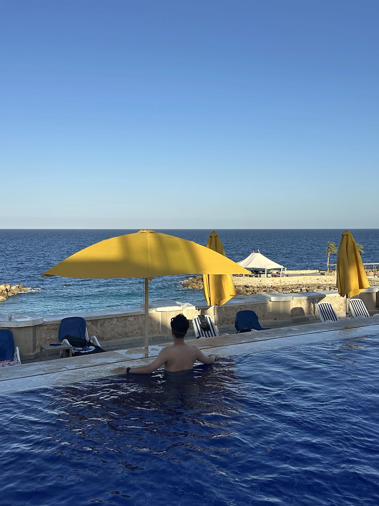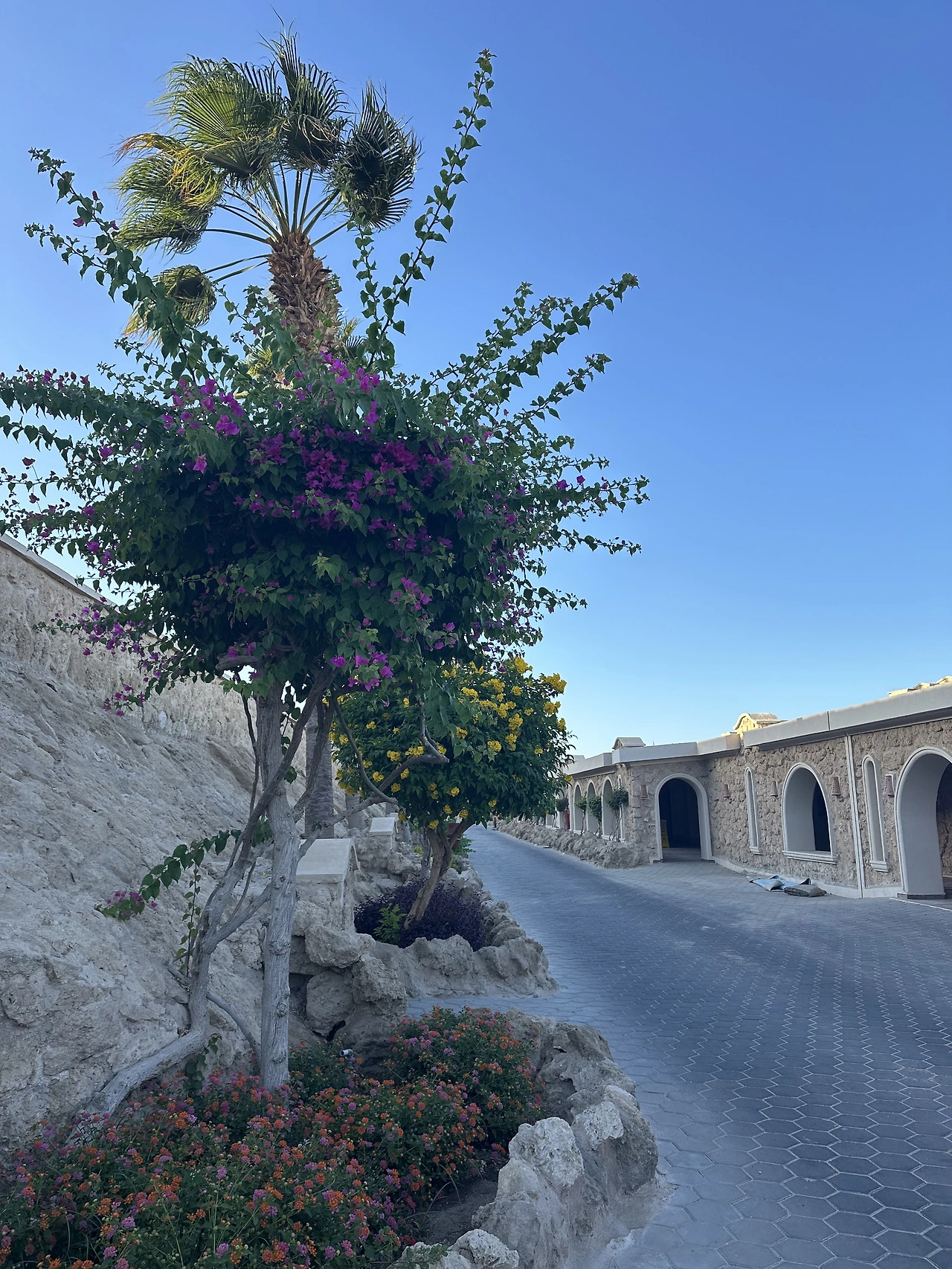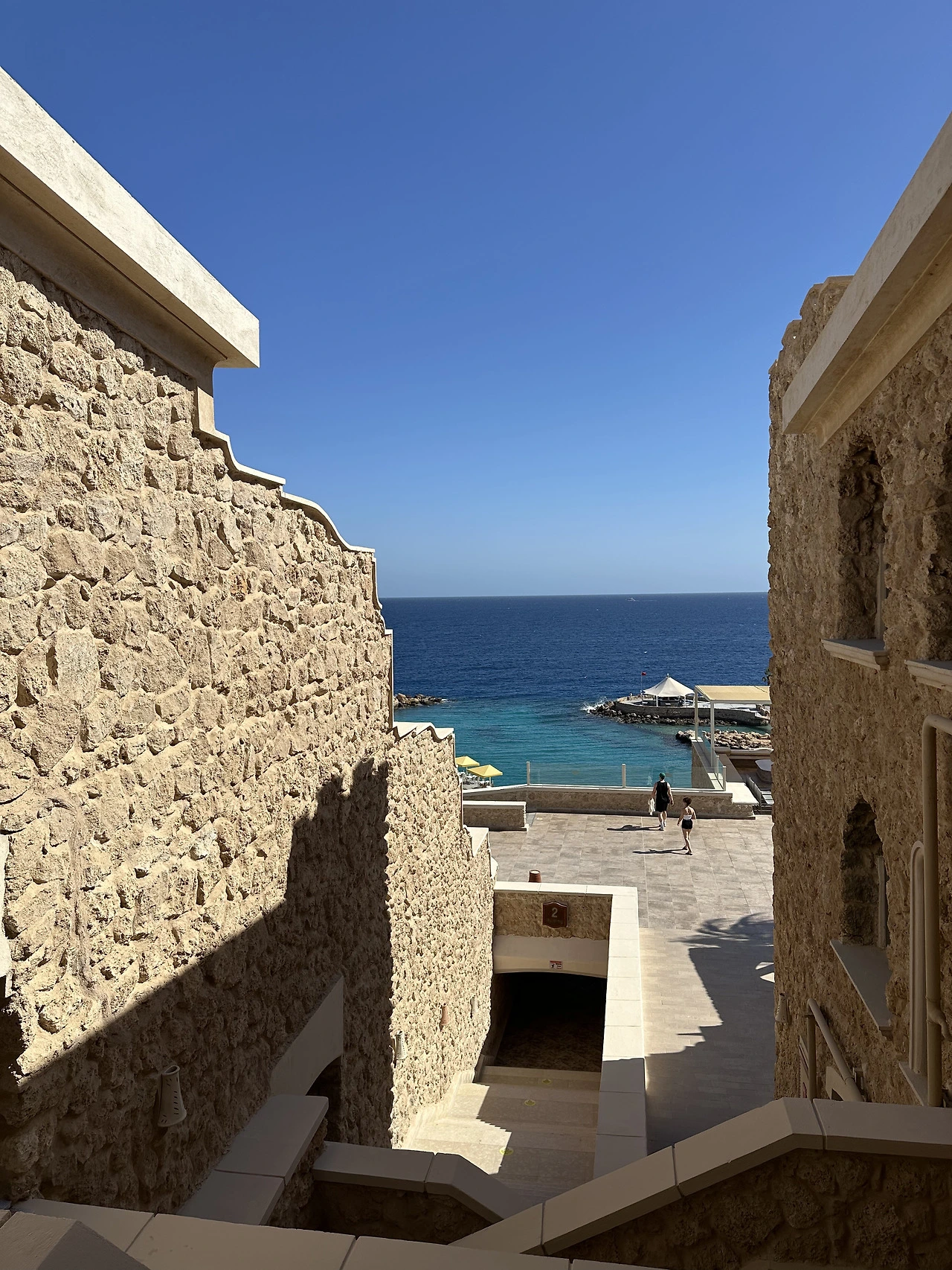 조식을 먹으러 객실에서 나와 걸어가는 길, 시타델이라는 이름처럼 리조트는 옅은 황갈색의 울퉁불퉁한 벽으로 마치 요새처럼 둘러 쌓여져 있다. 그리고 이 황갈색이 푸른 홍해와 대비되어 걸을 때마다 그 이국적인 풍경이 한참을 넋을 놓고 바라보게 되었다.