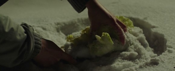 의식주는 우리 삶에 가장 기본이다. 도시인들에겐 무엇보다 입는 것이 중요하달까. 남의 눈에 잘 띄니까. 집만 나가면 아는 이에게든 타인에게든 자신의 입성은 여지없이 노출된다. 그것은 품위로까지 여겨지겠지만 오백씨씨 맥주잔 위에 거품일 수도 있다. 따르면 생기게 되는... 그런 도시에서 오래 살았어도 추운 겨울 오랜만에 시골집으로 돌아온 혜원(김태리)은 밥부터 해먹는다. 쌀독에 한줌 쌀말고는 부엌이 텅 비어있음을 확인하고 마당으로 나간다. 시골은 마트 대신 텃밭이라고, 겨울임에도 띄엄띄엄 남아있는 배추와 파가 눈에 덮인 채 뽑히기를 기다리고 있었다.