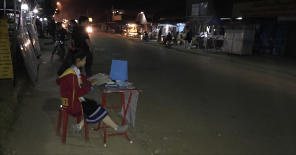 방비엥에선 주로 길거리를 어슬렁거리면서 음식도 사 먹고 이것저것 구경하는 것으로 시간을 보냈다. 그곳 사람들은 모두가 생활전선에서 열심으로 뛰고 있었다. 교복을 입은 채 부모님 장사를 돕는 어린 학생들도 있었고 한낮 땡볕이라 거리의 사람들도 드물고 공사판의 인부들도 쉴 수밖에 없는 시간임에도 어김없이 수레를 끌고 나와 뜨거운 철판에 갖은 재료를 볶아 파는 아줌마도 있었다. 저녁 해 질 무렵 숙소에서 나오니까 십여 미터 간격으로 간이의자에 앉아 뭔가를 펼쳐놓고 있는 사람들이 보였다. 여기는 일주일에 세 번 월, 수, 금에 로또를 판다고 한다. 우리는 일주일에 한 번뿐인데 요행을 바라는 기대수준이 세 배나 된다는 얘긴가. 그만큼 로또 수익이 많아져서 공익기금으로 널리 쓰이길 바랐다.