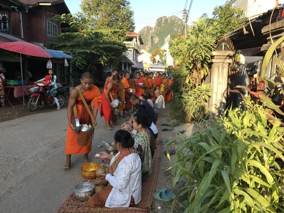 다음날 아침 잠결에 불경소리가 들려 급히 나가보니 짐작한 대로 TV 다큐멘터리에서 많이 본 시주하는 광경이 펼쳐졌다. 모두가 경건한 마음으로 음식을 건네주고 받는 의식이 치러졌다. 조금씩 담아주는 손길이지만 불심과 정성은 한가득으로 보였다. 스님들이 암송하는 경전 소리가 성과 속을 구분 짓는 메아리로 퍼져 나갔다.