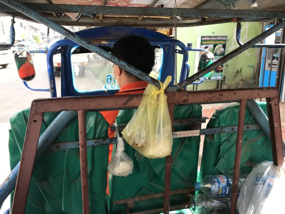 라오스에 와서 '뚝뚝이'는 한번 타봐야 할 명물이다. 오토바이를 삼륜차로 개조하여 뒤에 사람이 탈수 있는 이동 수단으로 타기 전에 가격을 협상해야 한다. 곳곳에 놀고 있는 뚝뚝이가 많은데도 가격은 물렁하지가 않았다. 결국 운전사가 부르는 가격 그대로 정하고 올라탔다. 하긴 깎아봐야 우리 돈으로 몇 백 원일뿐이다. 우리는 재미로 깎으려고 하는 것이지만 그들에겐 그것이 생계요 희망일 것이다. 막상 올라타고 출발하니 복병이 있었다. 배기통이 뒤 칸 바로 밑에 붙어있어서 우리는 바로 배기가스에 노출되었다. 매캐한 냄새가 그대로 맡아져서 괴로웠다. 속도도 빠르지 않아 배기가스에서 온전히 벗어나지 못해 짜증이 나려고 하는데, 운전석 바로 뒤에 비닐봉지가 걸려있는 게 보였다. 밥이랑 반찬이 들어있는 도시락으로 차량의 움직임에 따라 이리저리 흔들렸다. 왠지 밥이 아니라 삶이 저 비닐봉지 속에서 시달리는 것 같았다. 그래도 떨어지지 않고 꿋꿋하게 버티고 있는 모습이 운전사와 오버랩되면서 밥벌이의 숭고함이 느껴졌다. 그네들의 삶이나 우리들의 삶이나 인생은 그렇게 시련을 견뎌내며 살아내는 것인데, 그래 이까짓 매연쯤이야...