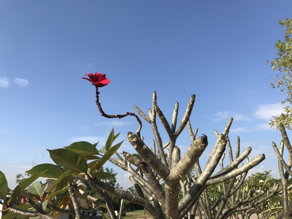 아침에 산책하는데 유난히 자주 눈에 띄는 나무가 있었다. '짬빠'나무로 여기서 피는 꽃이 이 나라 국화란다. '독'은 꽃이니 '독짬빠'가 국화 이름이다. 라오 항공 꼬리날개에도 독짬빠 문양이 있다. 하얀색, 노란색 꽃도 있다. 그 나라에서 젤 흔한 걸 국화로 삼는 것이 당연한데 우리나라는 왜 무궁화인지... 여름부터 가을까지 피고 지고 또 피고... 를 반복하는 그 근성때문에 국화로 삼은 건가. 진달래보다도 친숙하지 않은 꽃이기에 너무 작위적인 선정이 아닌가 싶었는데 독짬빠는 이방인인 내가 봐도 당연 국화로 삼을 만 하다.