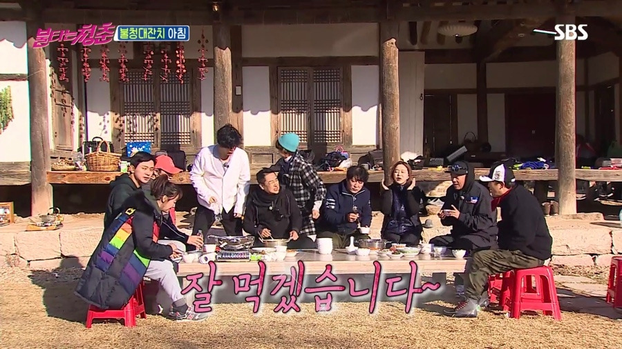일단 빽빽한 도심을 떠나 자연을 배경으로 하니 자연스러운 감성의 흐름이 회복되어 잊혔던 것들이 추억으로 되살아나는 건가. 힐링이 발동되는 시점이다. 이렇듯 불청이 여행이라는 포맷에 콘텐츠를 담다 보니 때마다 식사하는 것이 큰 비중을 차지한다. 점심을 먹고 나면 바로 다음 끼니를 걱정해야 하는 생계의 굴레가 확연해진다. 무엇을 먹을까라는 결정부터 그에 따른 식재료를 준비하고 손질하고 다 차린 후엔 추우나 더우나 마당의 널다란 평상에서 다 함께 식사하고 나중에 설거지까지... 혼자였으면 후딱 해치울 수도 있는 한 끼 식사가 부풀려지니 사람 사는 맛이 난다. 된장찌개에 웃음 한 큰 술, 따끈한 정도 두 큰 술 들어간다.