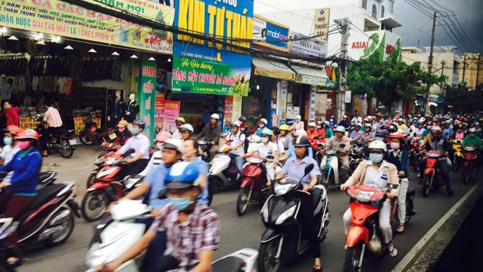 호치민에 처음 오는 사람이 가장 놀라는 것은 오토바이부대다. 오토바이로 빽빽하게 찬 도로를 보다보면 정신이 아찔해진다. 종종 애기를 앞에 태우거나 세네명이 한 오토바이에 타고 있는 모습을 보면 정신이 번쩍 들정도로 위험해보인다. (오토바이 앞부분에 애기를 태울 수 있는기다란 의자도 판다)
