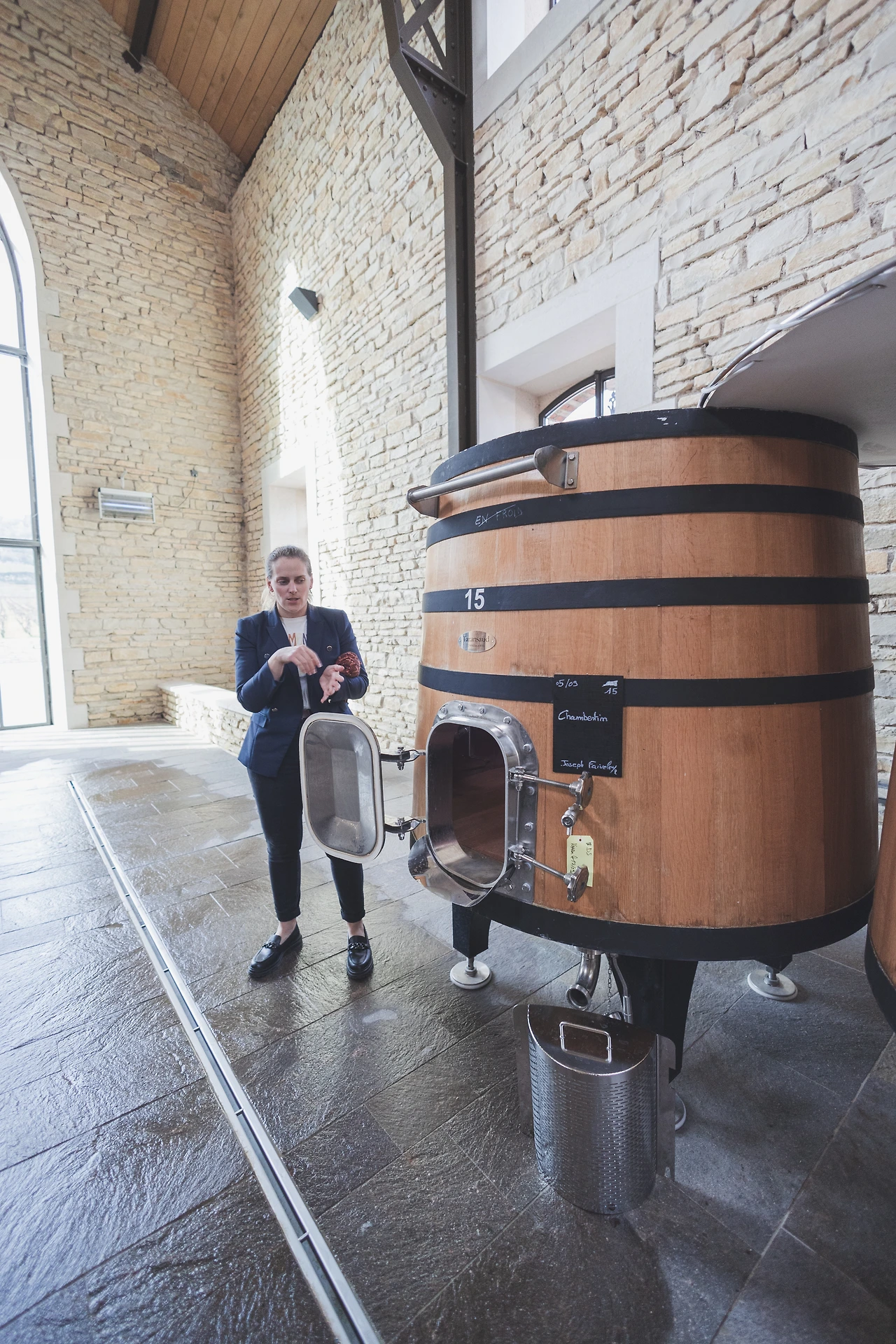 이어서 우리는 가이드를 따라 발효조가 있는 공간으로 이동했다. 그곳에는 높은 천장 아래 오크로 만들어진 커다란 발효조들이 양쪽으로 길게 나열돼 있었다. 그들이 만들어내는 웅장함이란 정말 상당했는데 마치 페블레의 거대한 규모를 상징적으로 보여주고 있는 듯했다.