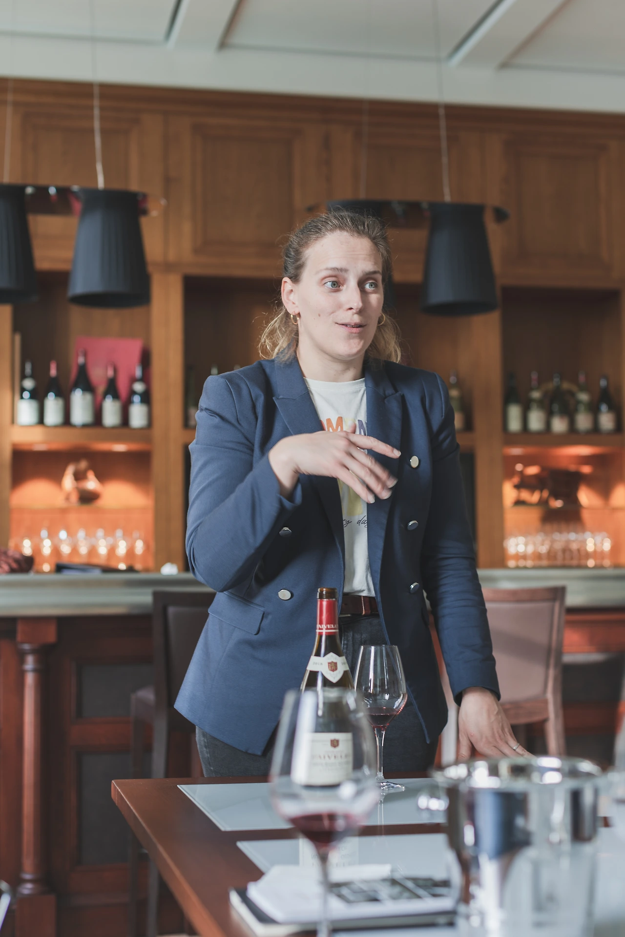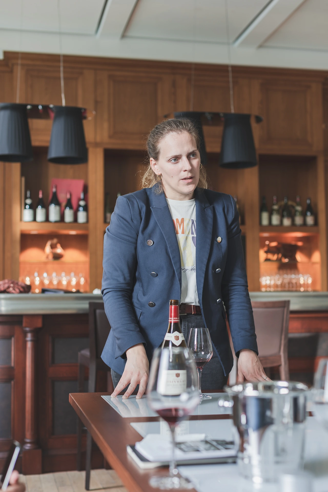 첫 번째 그랑크뤼 와인 시음에 앞서 우리에게 설명 중인 도멘 담당자