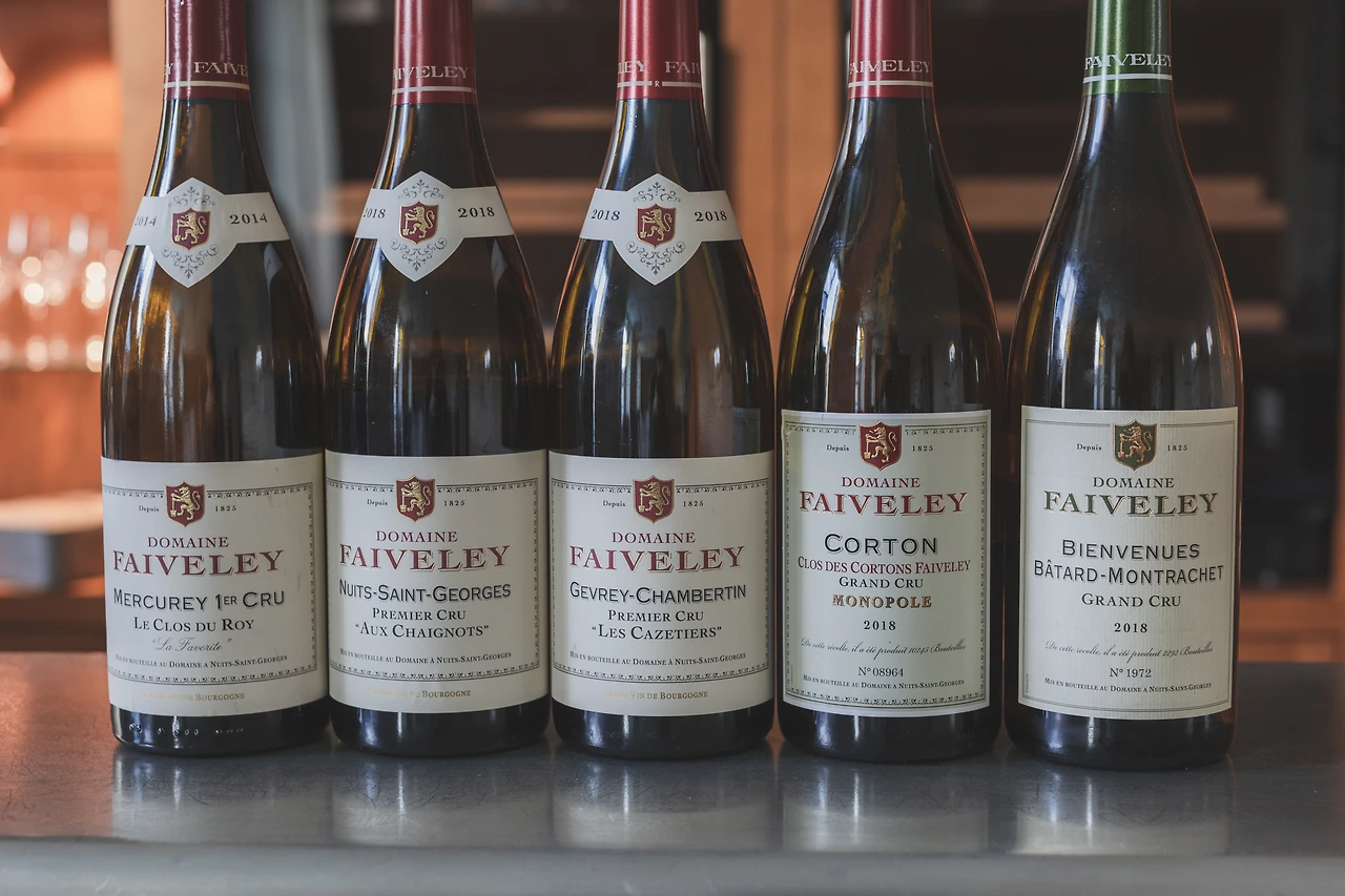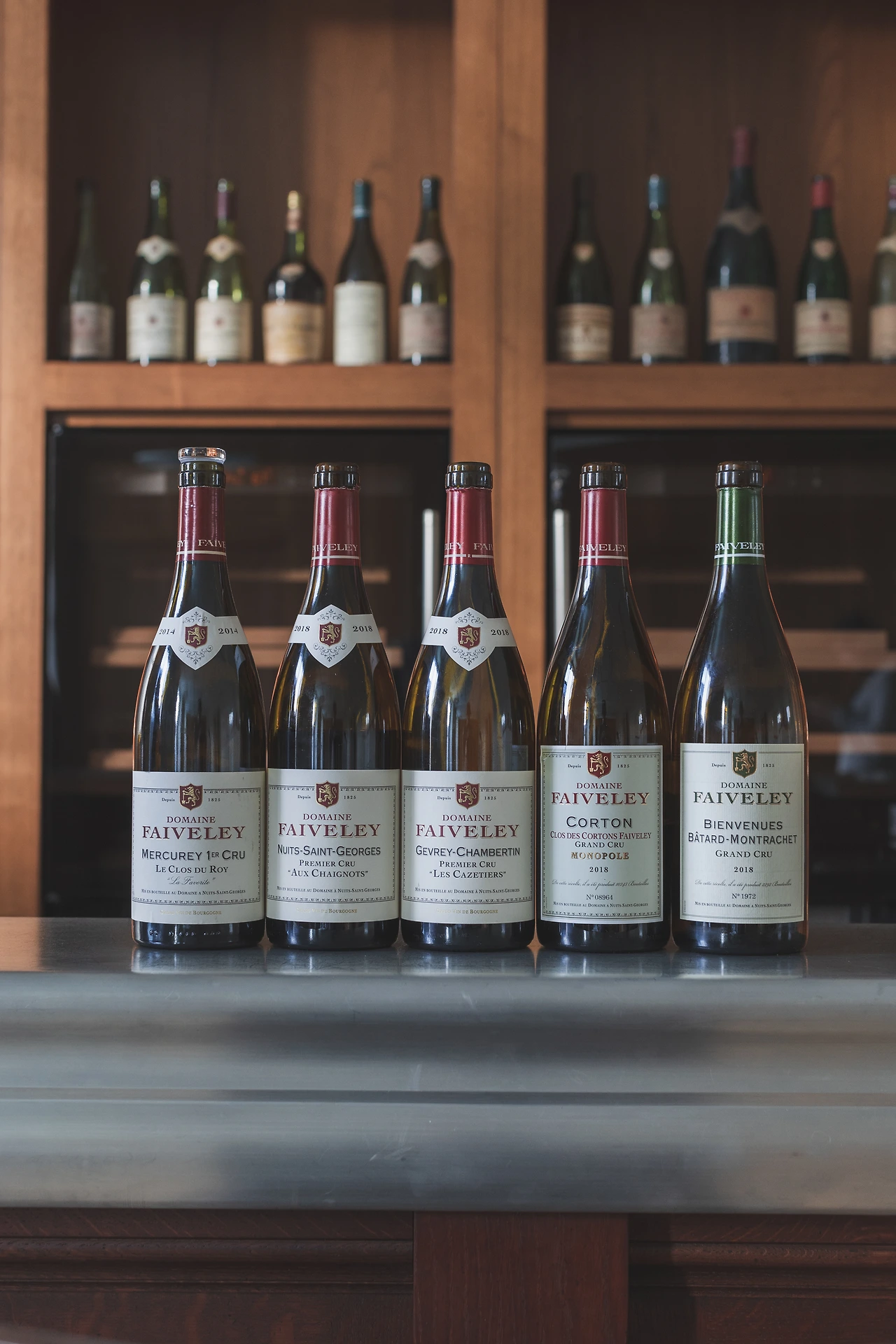 Grands Climats(€120/pers) - 5 wines 3 Premiers Crus, 2 Grands Crus 2014 Domaine Faiveley Clos du Roy Mercurey 1er Cru 2018 Domaine Faiveley Aux Chaignots Nuits-Saint-Georges 1er Cru 2018 Domaine Faiveley Les Cazetiers Gevrey-Chambertin 1er Cru 2018 Domaine Faiveley Corton 'Clos des Cortons Faiveley' Monopole Grand Cru 2018 Domaine Faiveley Bienvenues-Batard-Montrachet Grand Cru