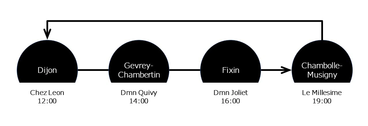 음식을 주문하면서 나는 직원에게 이후 일정과 상황을 설명한다. 프랑스 식당에서 1시간 동안 식사를 하고 계산까지 마친다는 것은 쉽지 않은 일이기 때문이다. 여기서 제브리샹베르탱까지는 약 25분. 도멘 퀴비에 2시까지 도착하려면 서둘러야 했다.