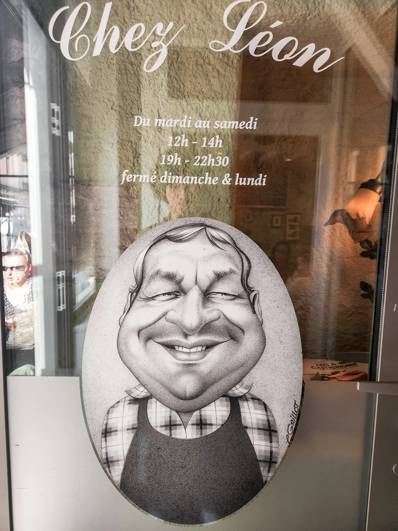 나는 정오가 조금 지나서 쉐-레옹(Chez Leon)에 도착했다. 구시가지에 있는 식당 위치 때문에 주차가 쉽지 않을 수도 있겠다 싶어 30분 일찍 왔는데도 결국 늦고 말았다.