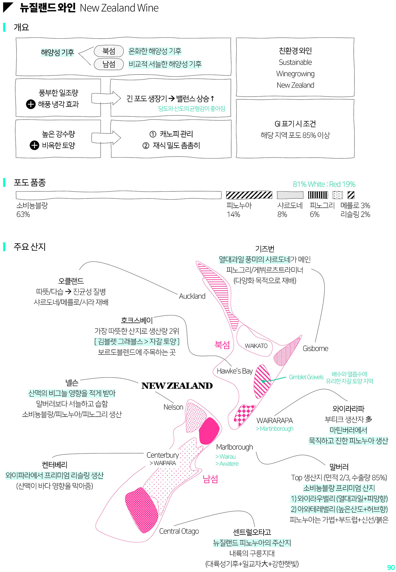 2. 뉴질랜드 북섬/남섬의 대표 산지와 포도품종, 그리고 와인 스타일