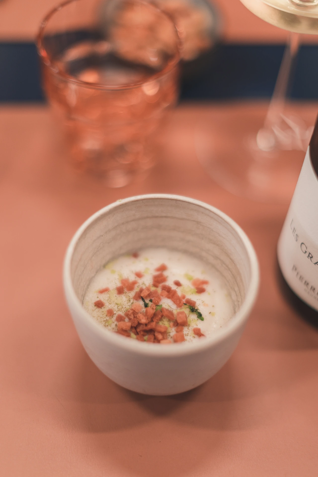 와인은 뱅상지라르뎅의 아들, PVG의 뫼르소였는데 2020 빈티지여서 산도가 엄청나게 강했다. 레몬즙을 입에 가득 베어 문 듯한 찌릿함이었다. 혀가 아려온다.