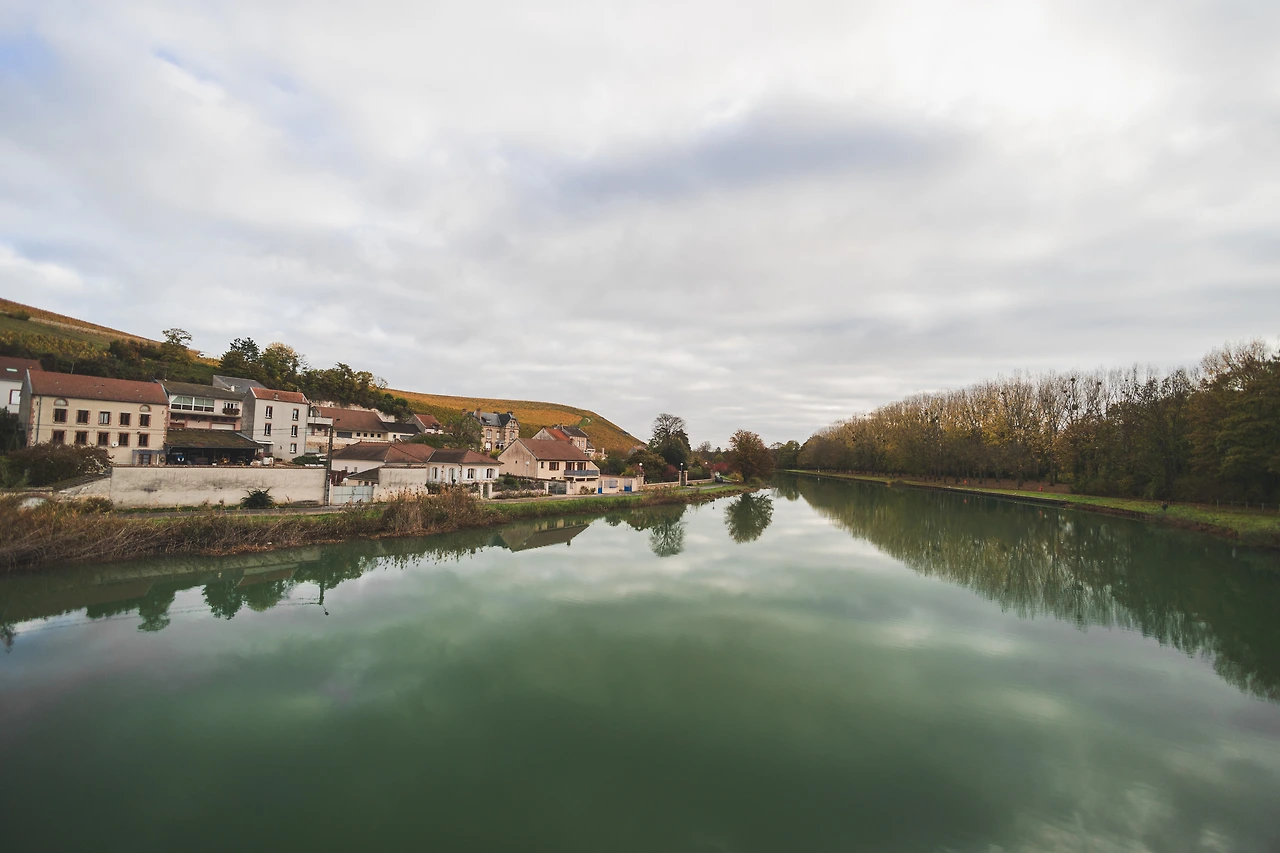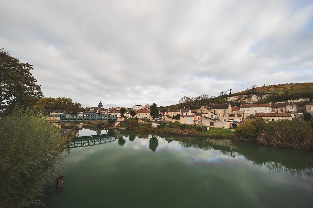 Marne 마른강이 흐르는 초록색 물줄기를 거슬러 올라가면 예쁜 집들과 포도밭들이 보이기 시작한다.