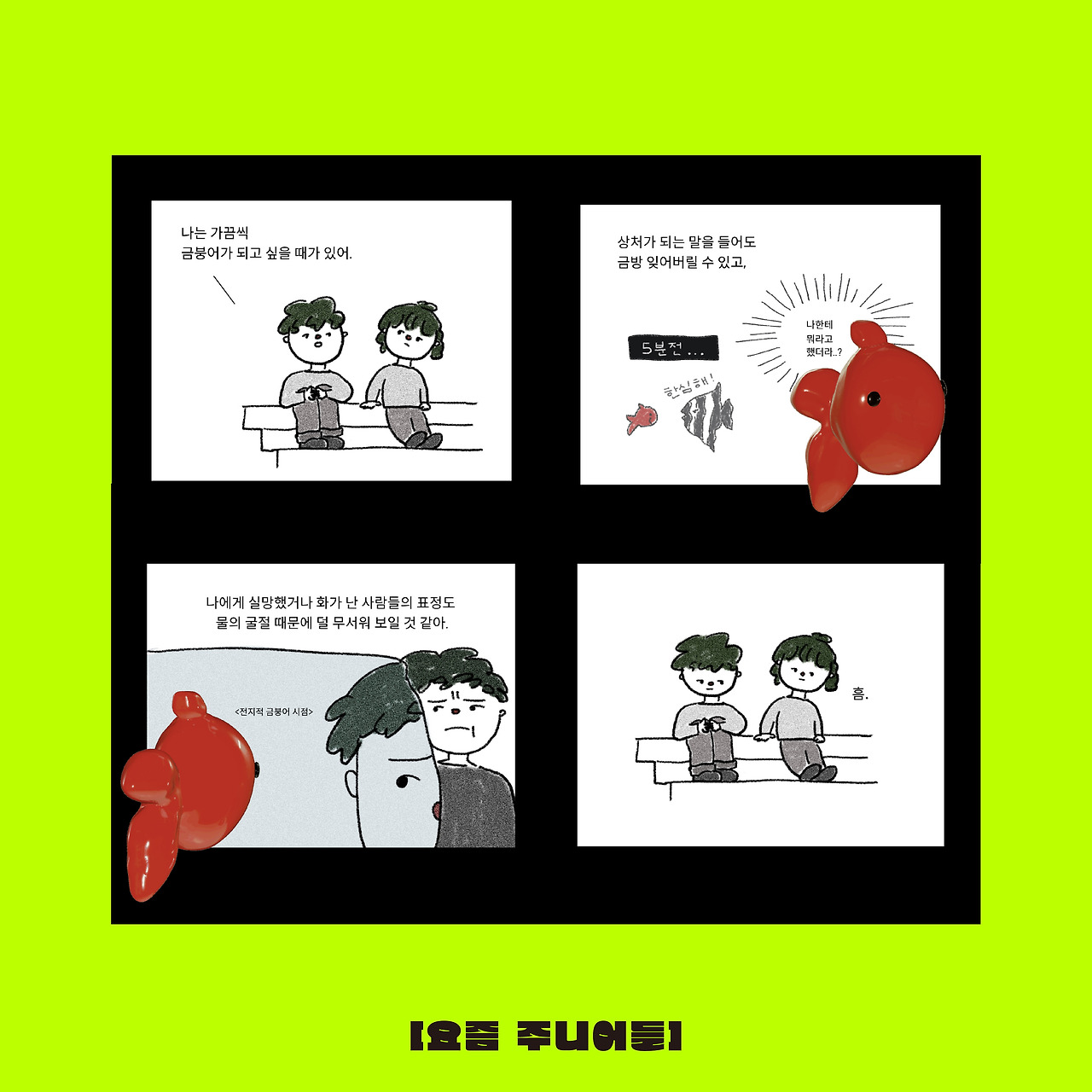 지금 유리컵, 스티커, 곱창밴드가 있고. 그 뒤에 준비되어 있는 라인업도 스포를 하자면, 에코백, 포스터, 마우스패드, 키링 같은 것들. 어쩌다 보니 상품기획이랑 마케팅, 그리고 리테일까지 다 내가 하고 있어. (웃음)