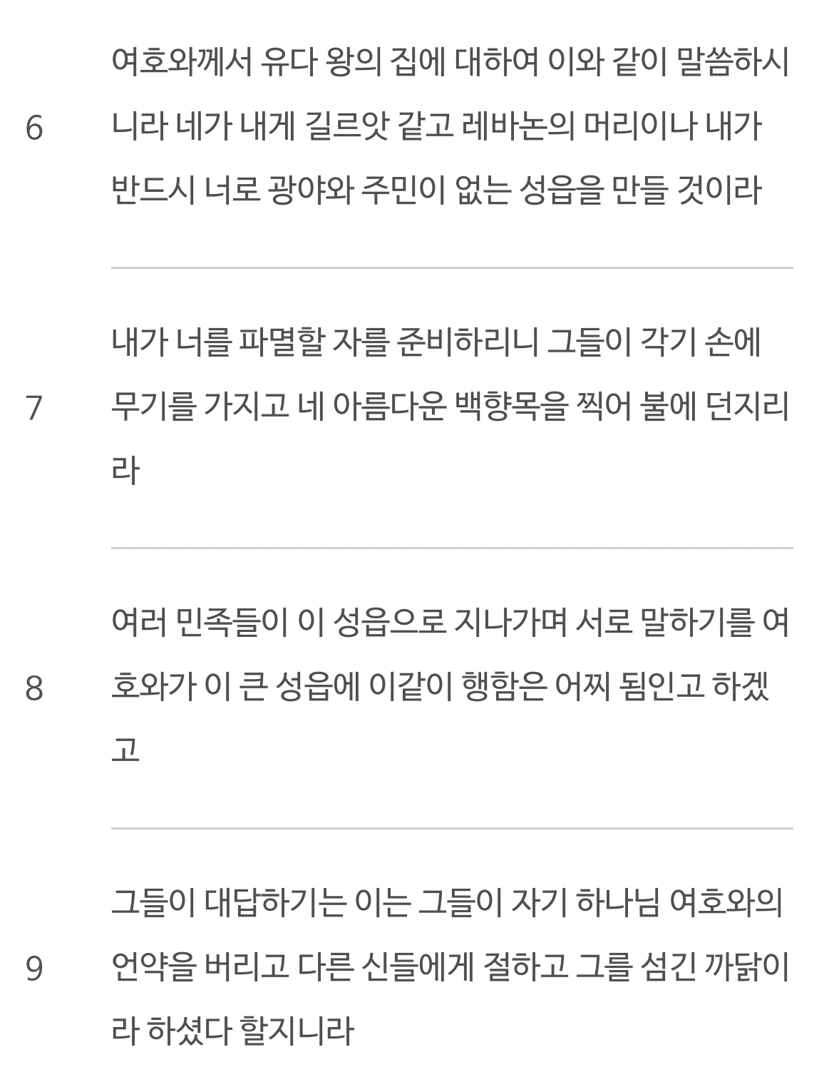 3절에 유다 왕이 해야 할 일을 말씀하시고 그렇지 않으면 황폐해질 것이다 말씀하신다. 9절에 이유가 나온다. ‘그들이 자기 하나님 여호와의 언약을 버리고 다른 신들에게 절하고 그를 섬긴 까닭’이라고. 즉, 하나님을 섬기고 하나님을 따라 사는 것이 3절에 나온 것이라는 것이다.