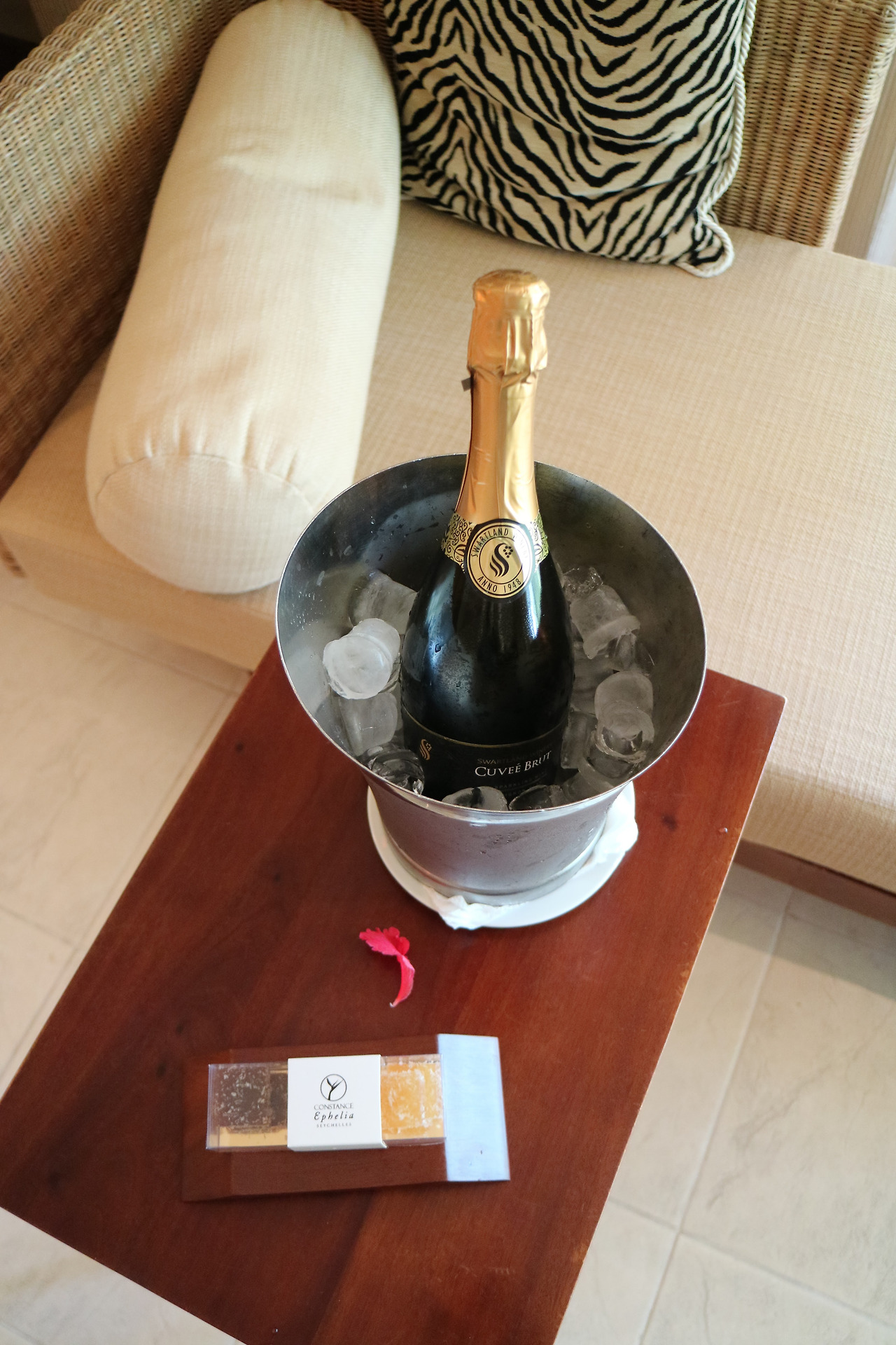 배정받은 숙소에 들어서면서 정말이지, 초짜 직원의 어눌함을 인내심 있게 견딘 것에 대한 포상을 받는 기분이었다. 우리 방은 110호, 방 안 곳곳에 장식된 빨간 크레올 꽃이 우리의 입성을 환영했다. 오늘 밤에 짠- 하고 마시며 분위기 한 번 제대로 잡아보소, 하는 샴페인 한 병도 아이스빈에 차르랑 담겨 있었다.