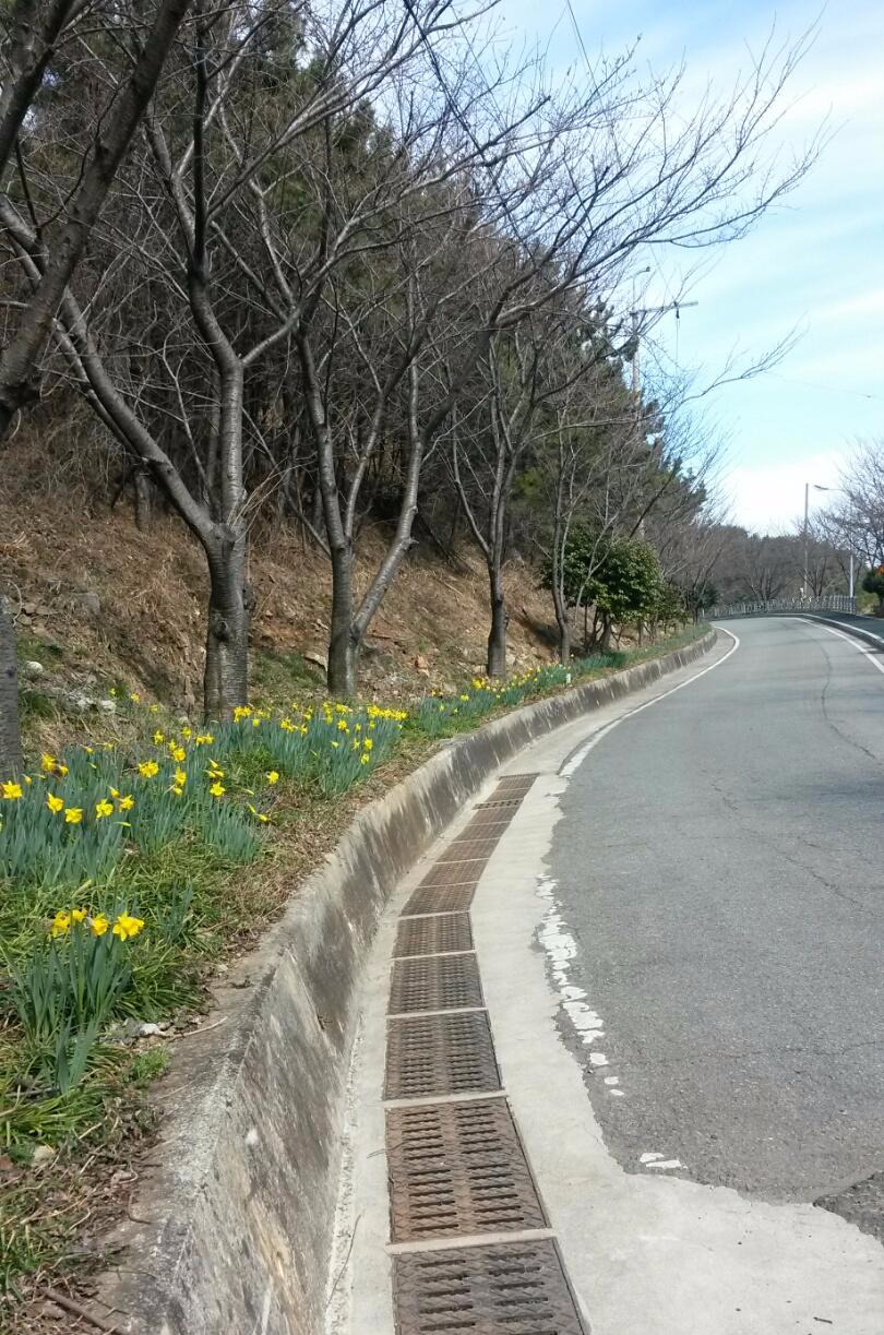 이미 3월에는 개나리와 동백꽃, 수선화가 만개했고 벚꽃은 이제 막 싹을 틔우고 있었다. 해마다 이 길의 벚꽃은 4월 초에서 중순 사이에 만개한다.