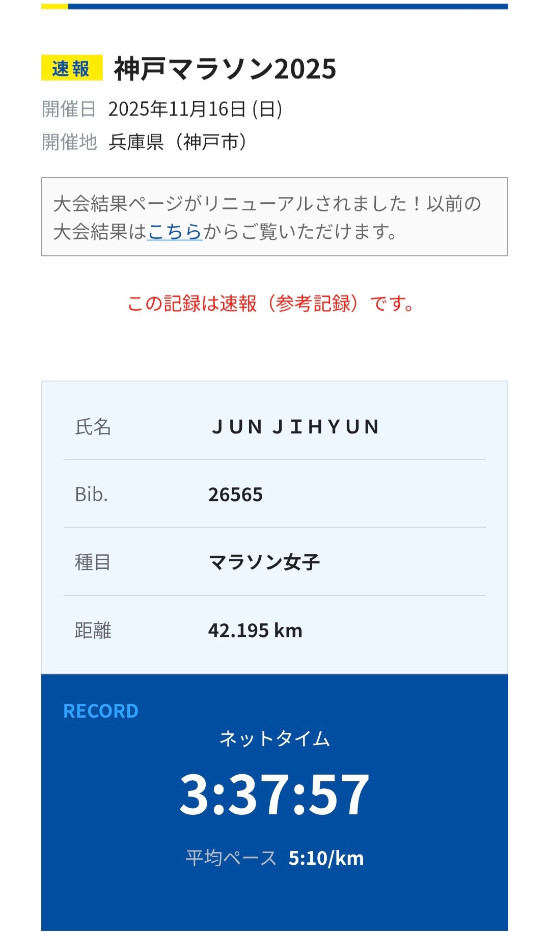 처음에는 저를 생각해 주시는 것 같아서 정말 감사했는데, 자꾸 속도를 올리려고 할 때마다 못 올리게 하시고, 첫 대회면 이것도 상당히 잘하는 거다. 절대 기록 생각하지 말고, 시계 보지 말고, 호흡에 신경 써라 하시며 큰 사고가 날 수 있다고 하셨습니다.