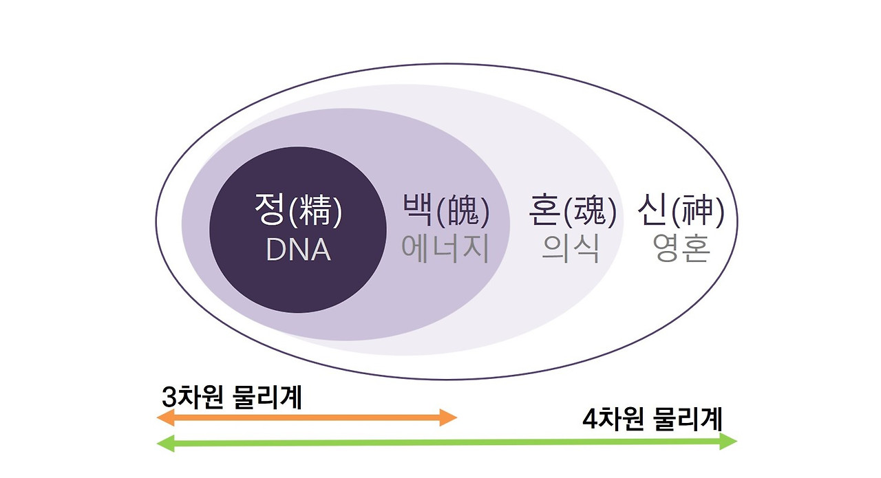 앞에서 간략히 살펴 보았듯이, 우리는 정, 백, 혼, 신의 네 층으로 이루어져 있다. 그리고 이 중 '정과 백'은 3차원계에, 혼과 영은 4차원계에 머문다. 그리고 양자계가 어디 먼 곳이 아니라 우리 존재의 바탕에 존재하듯이 그 세계도 우리의 삶 안에 있다.