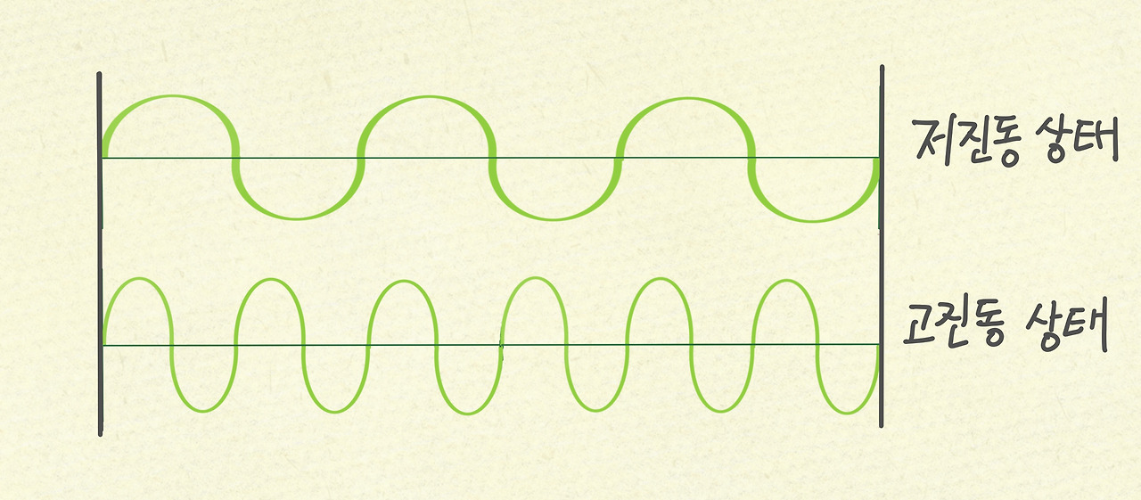 진동수는 파동이 단위시간 동안 몇 번 반복되는지를 나타내는 말이다. 예를 들어, 물결이 위아래로 1초에 3번 반복된다면, 이 물결의 진동수는 3Hz(헤르츠)가 된다. 진동수가 클수록, 즉 고진동 상태일수록 해당 파동이 지닌 에너지(그것이 실어 나를 수 있는 힘 또는 정보)도 커진다. 또, 붉은색보다 보라색의 진동수가 크다.