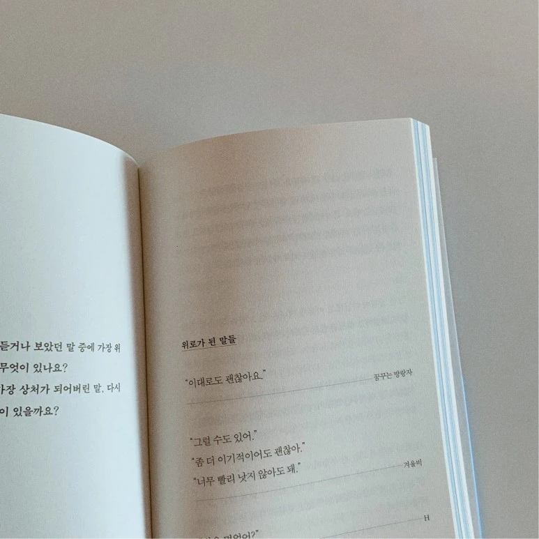 '위로가 된 말들' 페이지를 소리 내 읽어 봅니다.