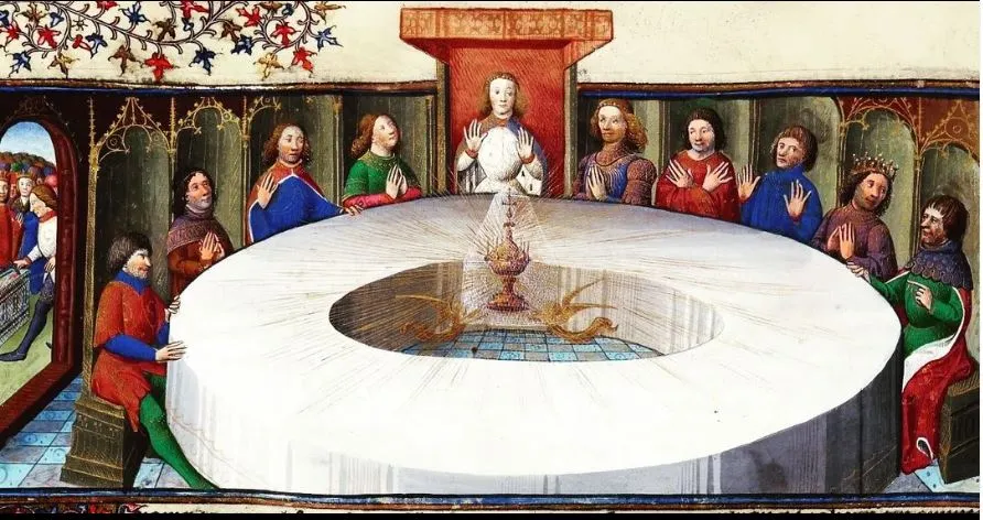 아서왕은 13인의 기사들과 함께 원탁에 앉아있다. 13인은 예수의 제자를 뜻하며 가장 우수한 기사들만이 원탁에 앉을 자격이 있었다. 그들은 가치 있는 물건이라 생각되는 성배를 찾으러 떠났다. 그러나 그들은 성배가 무엇인지 어디에 존재하는지 몰랐다. 그래서 각 기사들은 각자의 시점으로부터 '가장 어두운 지점'으로 들어가 성배와 성창을 찾기 시작했다. 비극적이게도 성배는 끔찍하게 생긴 붉은 용(Red Dragon)이 지키고 있었으며 영생을 가진 이 포식자와 함께 놓여져 있었다. 이 괴물은 기사들을 쉽게 죽일 수 있었지만, 성배와 성창 그리고 금은보화를 갖고 있었다. 이 이야기는 서유럽 브리튼의 아서왕(King Arthur) 『원탁의 기사』의 일부다.