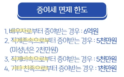 특히 간과하지 말아야 할 점은 부부가 각각 6억씩 증여할 수 있다는 점이다. 다만, 전제는 부부가 주식 이외에는 증여할 게 없어야 한다는 조건이 붙기 때문에 이 부분은 유의해야 한다. 가령 예를 들면 부동산을 증여하고 나서 주식까지 증여하게 되었을 때 10년 내 6억을 넘게 증여할 확률이 높아 조심해야 한다.
