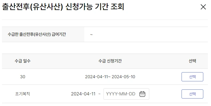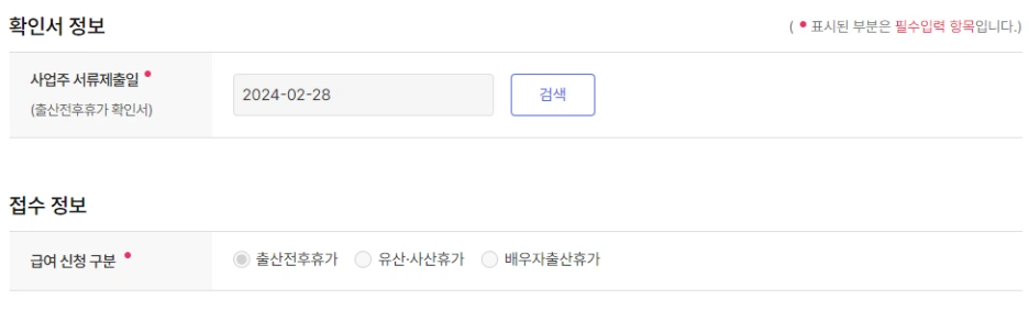 반면, 대규모 기업은 출산전후휴가를 시작한 날 기준 90일 이후부터 휴가 끝난 날로부터 12개월 이내에 신청해야 한다. 아내의 경우 2월 11일부터 5월 10일까지 출산휴가를 사용하였고, 5월 10일부터 신청이 가능해졌다.