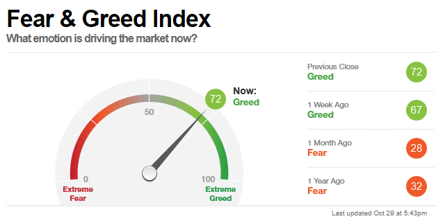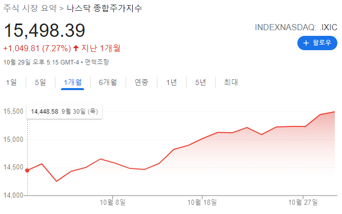 10월은 대체로 주식 시장이 상승 분위기로 좋았으나, 3분기 실적 발표, 전 세계 공급망 부족 이슈, 원자재 가격 상승 등 기업별로 명암이 갈렸습니다. 나스닥 종합지수는 9월 하락분을 전부 회복하고 All-Time-High(신고가)를 눈앞에 두고 있습니다. Fear & Greed Index 역시 한 달만에 25에서 72까지 크게 상승하며 증시의 열기를 증명해주고 있습니다.