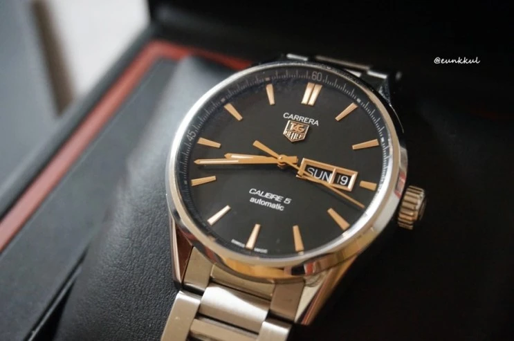 최종 구입을 결정하기 전까지만 해도 일상이 즐거움의 연속이었다. 어떤 브랜드의 어떤 시계를 사야 하는 것일까 고민하는 것이 행복했다. 처음에는 예산을 200만 원 정도까지 잡고 태그호이어 브랜드의 까레라 칼리버5를 눈여겨봤다. 디자인도 마음에 들고 명품이라는 점에서 내 마음에 들었다. 롯데백화점에 있는 매장에 가서 실제로 착용해보기도 했다. 하지만 역시 결정적으로 기계식 시계의 심장인 무브먼트가 부실하다는 정보를 접하고 리스트에서 삭제하였다. 디자인이 아주 마음에 들기는 하는데 시간이 너무 안 맞거나 자주 고장이 나는 것은 질색이다.