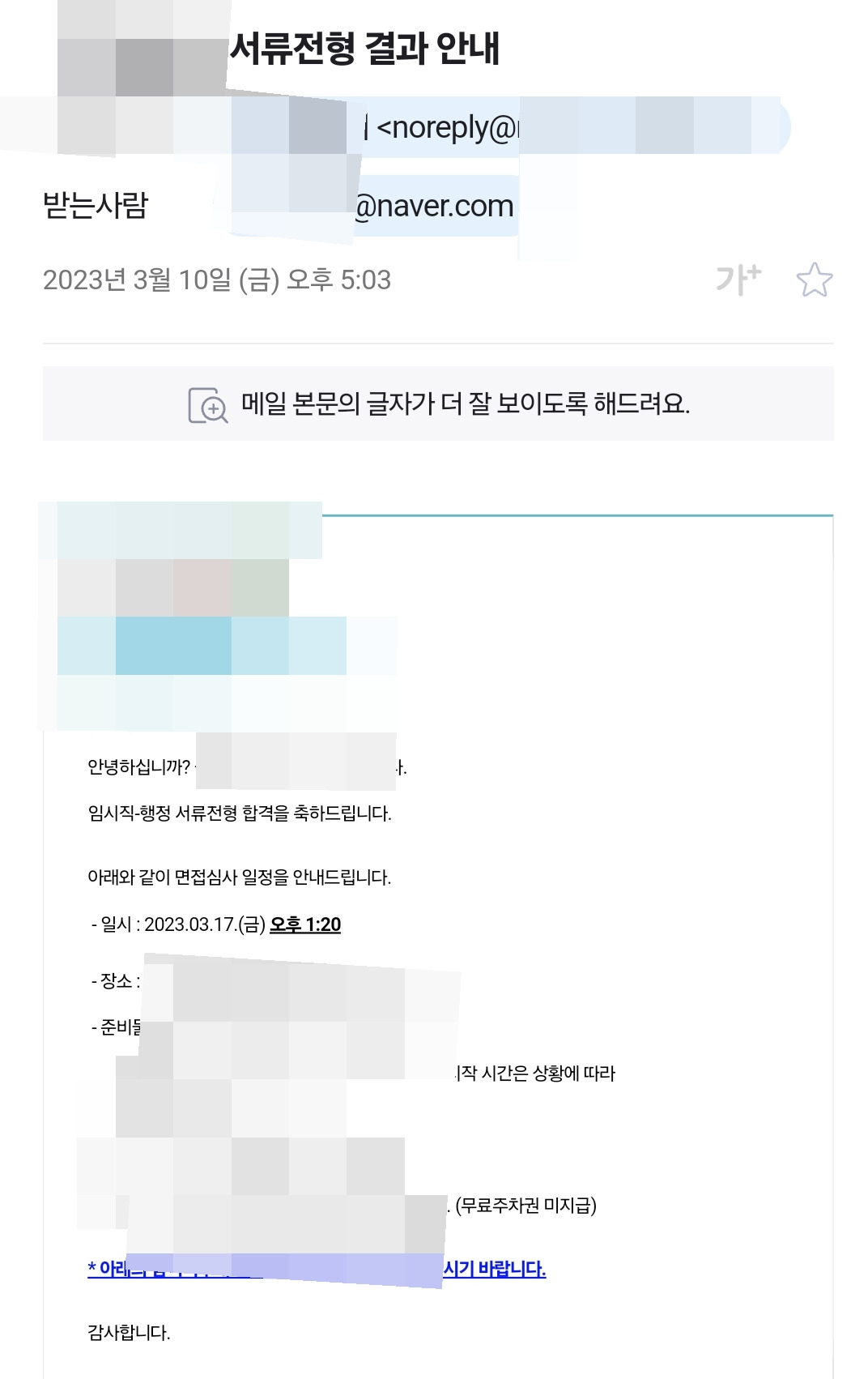 그러던 중 3월 10일에 레몬기관에서 서류통과를 했으니 면접을 보러 오라는 연락이 왔습니다.