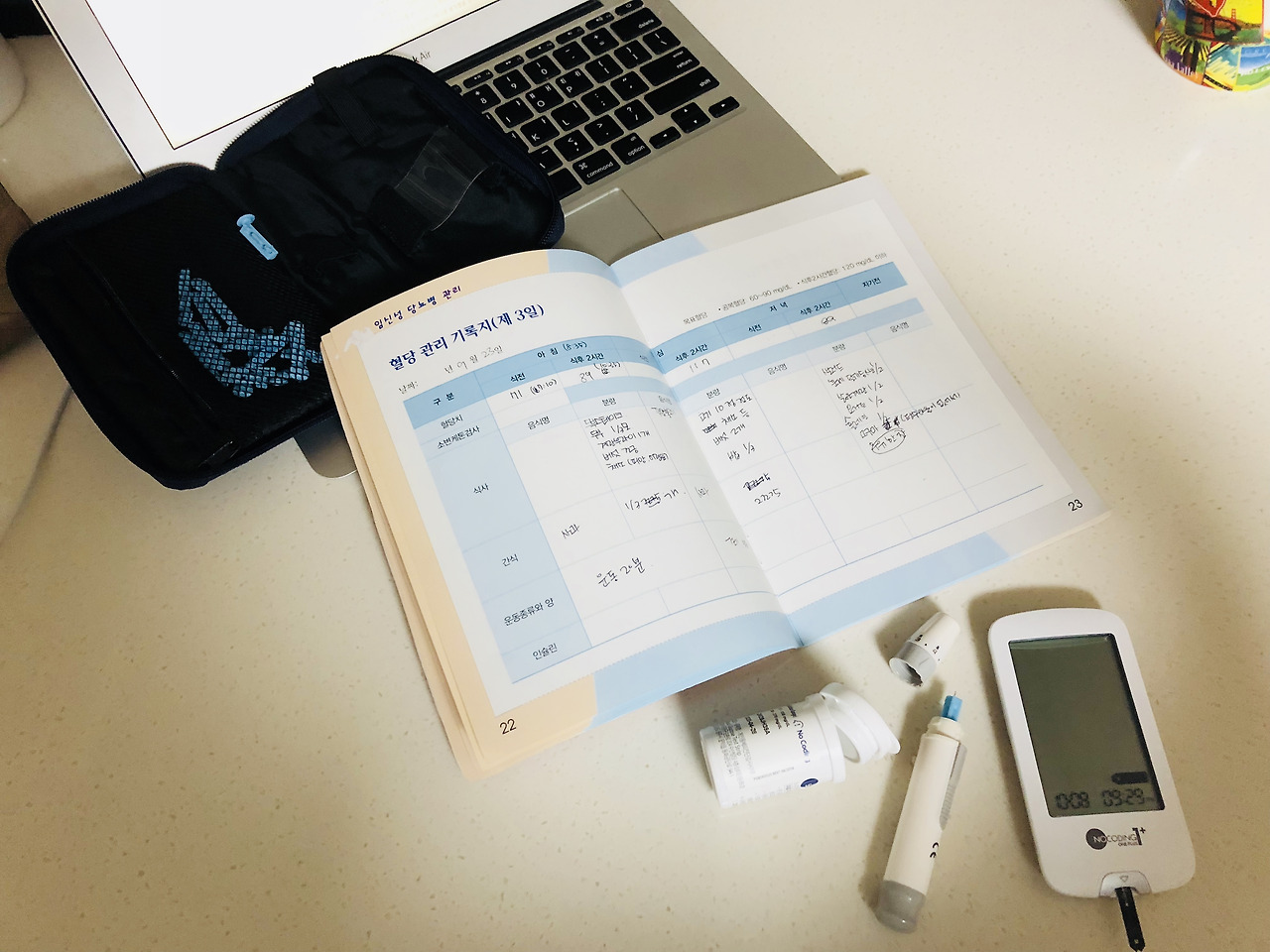 임신당뇨를 위한 당뇨측정장비와 혈당관리 기록