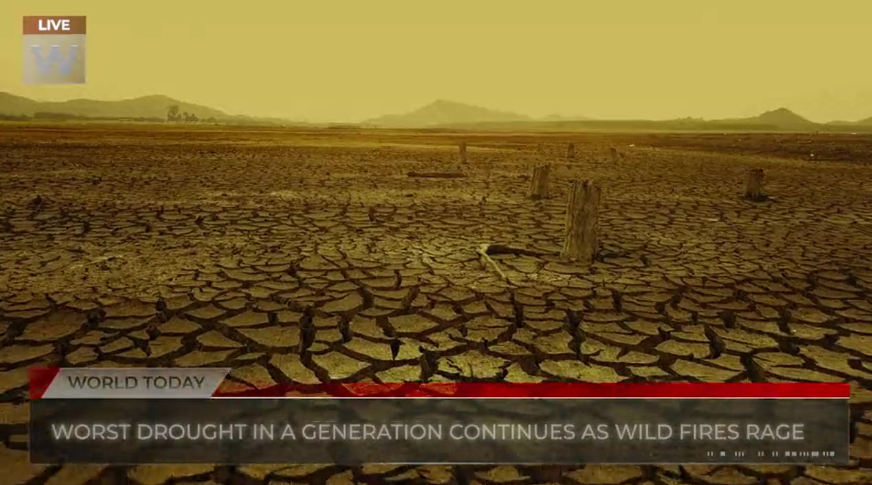 연평균 강수량이 최저치 기록. 세계 대도시들의 강이 바닥을 보이며 해수면이 낮아지면서 해수 담수화 작업도 어려움을 겪음. 세계 수자원 협력 기구는 향후 10년 안에 전 세계 물의 40%가 줄어들 거라 예측.