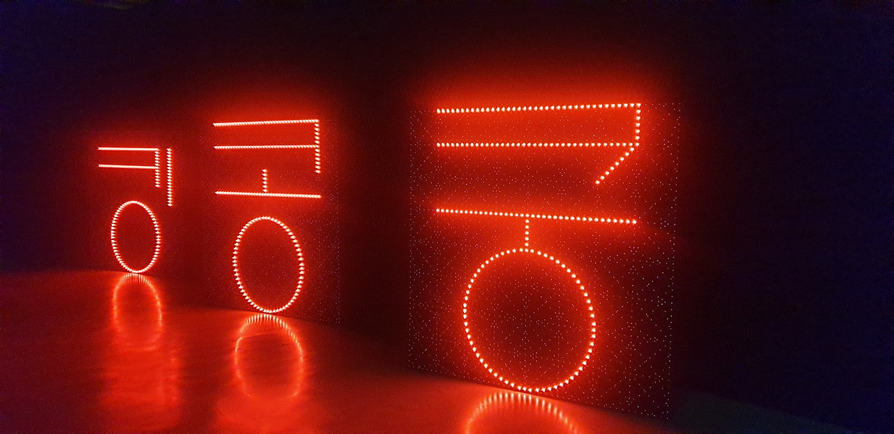 2021년 조선일보 창간 100주년 한글특별전 ‘ㄱ의 순간’에서 만난 작품. 글자 형태는 소리와 함께 계속 변했다. 관람객에 따라 다른 글자를 촬영했을거라.. 나도 '소리(자극)'와 함께, 계속 변한다. 좋은 자극을 쌓아갈 생각.