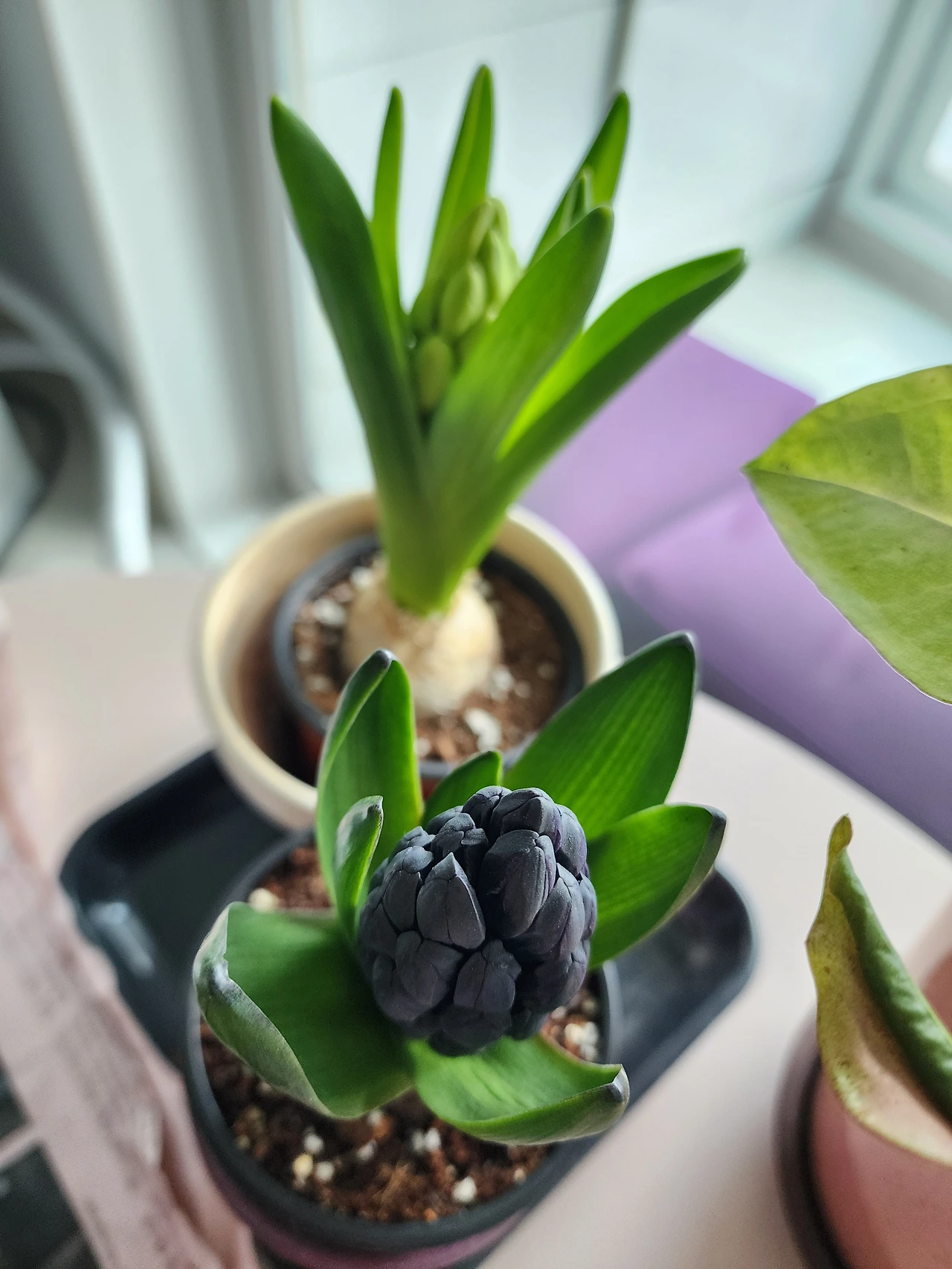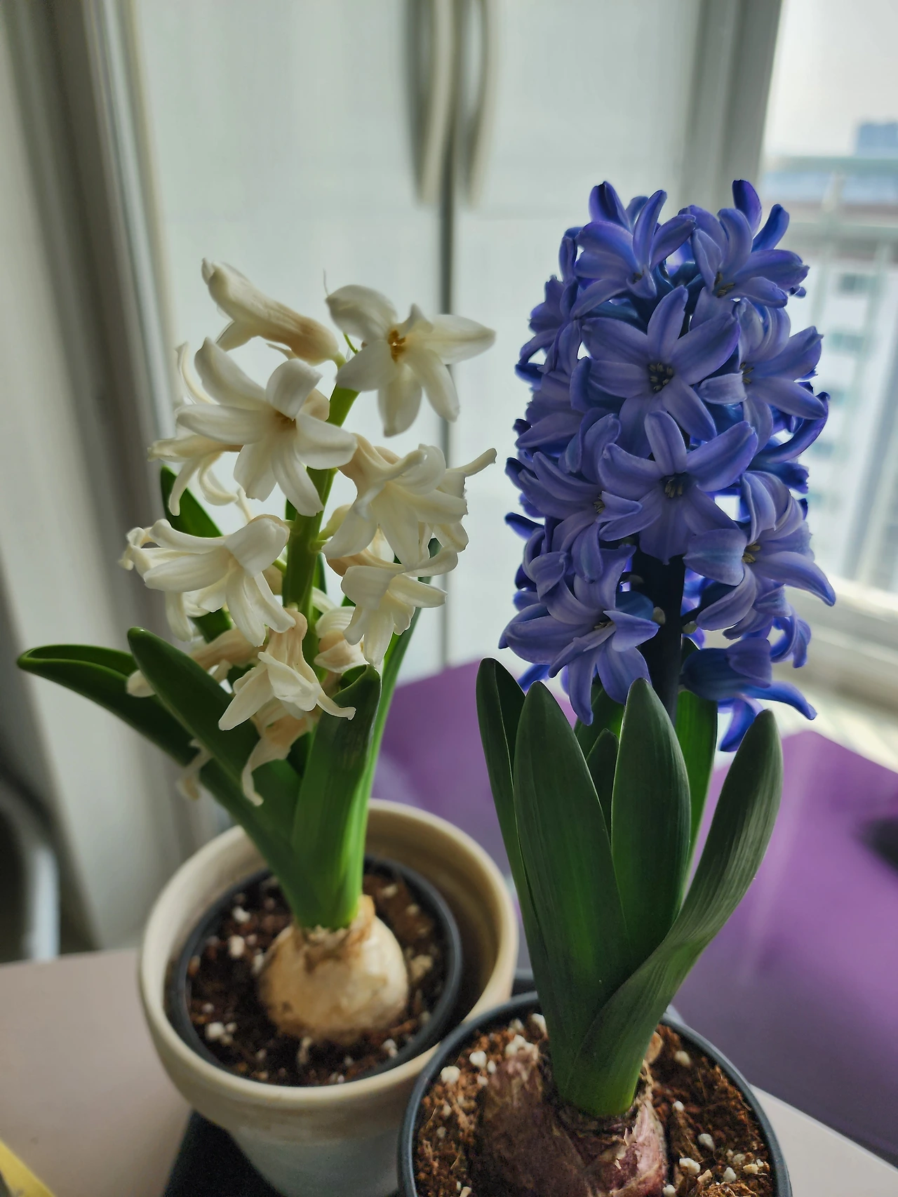 타임랩스를 켜뒀다면 꽃대가 올라오고, 꽃이 피는 것까지 그대로 찍혔을텐데. 마치 기다렸다는 듯 집에 데려오자마자 쑥 올라온 꽃대와, 숨겨둔 꽃까지 순식간에 내어놓은 히아신스. 생명의 경이로움.이라고 밖에. 말로 글로 다 표현할 방법이 없다. 참 잘 자란다. 그리고 토해놓은 그 향기로움이란. 나 좀 봐. 너도 좀 이렇게 성장하자. 봄이잖아.. 만물이 살아나잖아.... 같은 메시지를 함께 흩뿌리고 있는.