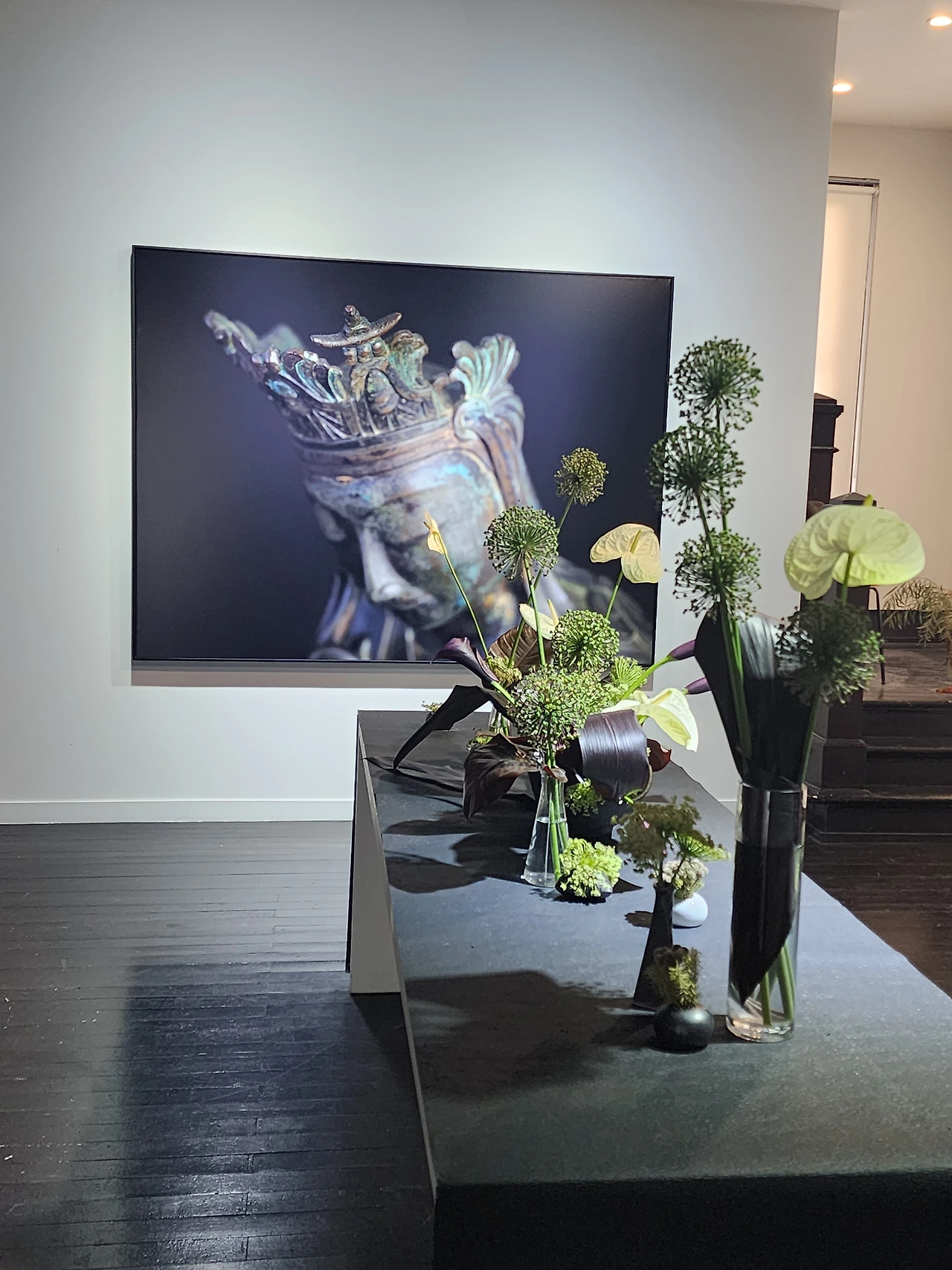 평일 점심에 정동길에 위치한 두손갤러리에 다녀왔다. 준 초이 작가님의 '반가사유상' 사진전. 아늑하고 조용한 공간에서 만난 반가사유상이 주는 울림은 컸다. 있는 그대로의 모습을 담는 사진이 여러 각도, 빛, 색깔로 변주되고 반가사유상의 오묘한 미소와 사유도 여러 느낌으로 전달됐다. 평일이라 그런지 관람객이 많지 않았고, 나는 마치 독점한 것처럼, 나만의 명상 시간을 잠시 보냈다. 오래된 건물에 자리 잡은 작은 갤러리 느낌도 따뜻했다. 잔상은 오래 남았다. 고요하고 평화롭게. 일상을 살아야지.