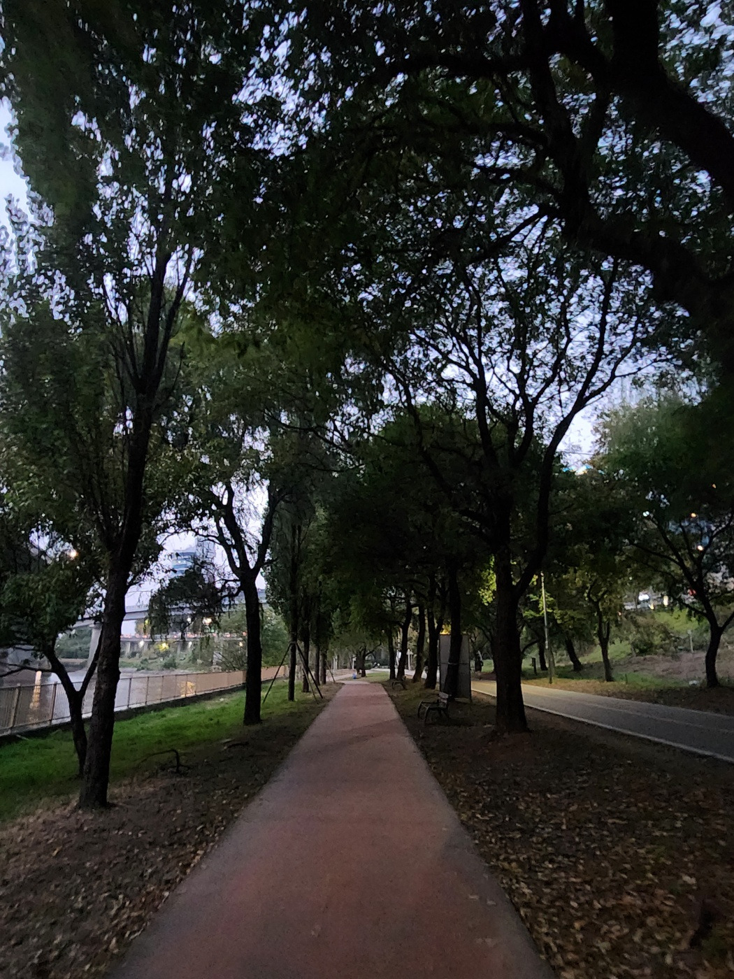 물이 있고 나무가 같이 우거진 이 길이 참 평화롭다.