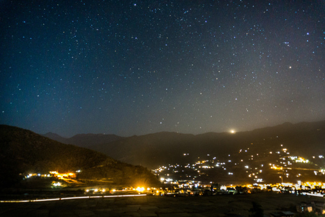 어느 여행지의 밤하늘이 아름답지 않겠냐만은 부탄의 밤하늘은 더욱 더 그 의미가 있다. 개발보다는 자연 보호를 중요시하는 나라로 맑고 청정한 밤하늘에서 빛나는 수많은 별들은 곧 머리 위로 떨어질 것만 같다.