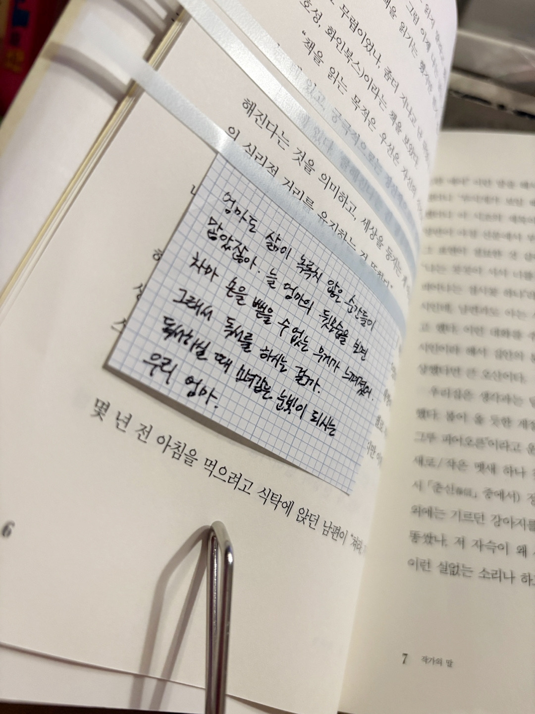 적은 양의 글귀였지만, 정갈한 글씨에 정확한 어휘로 가볍게 쓰여있던 내 이야기 같은걸,