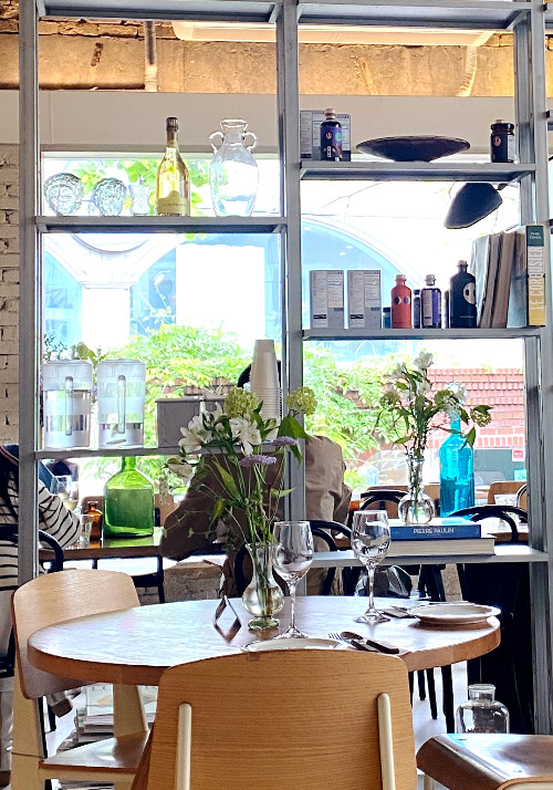 예약시간 보다 조금 일찍 도착했다. 이곳은 주택을 개조해서 만든 레스토랑이다. 아치형태의 입구는 붉은 벽돌로 만들어져 있다. 개방되어 있는 입구안쪽으로는 바로 정원이 있는데, 식탁들이 어지러이 놓여있고, 흐드러지게 핀 하얀 수국이 주변을 장식하고 있다. 프랑스 할머니가 손주들을 초대해서 정성껏 가꾼 정원에서 한 끼 대접할 것만 같다. 나는 아쉽지만 정원 말고, 안쪽으로 안내받았다.