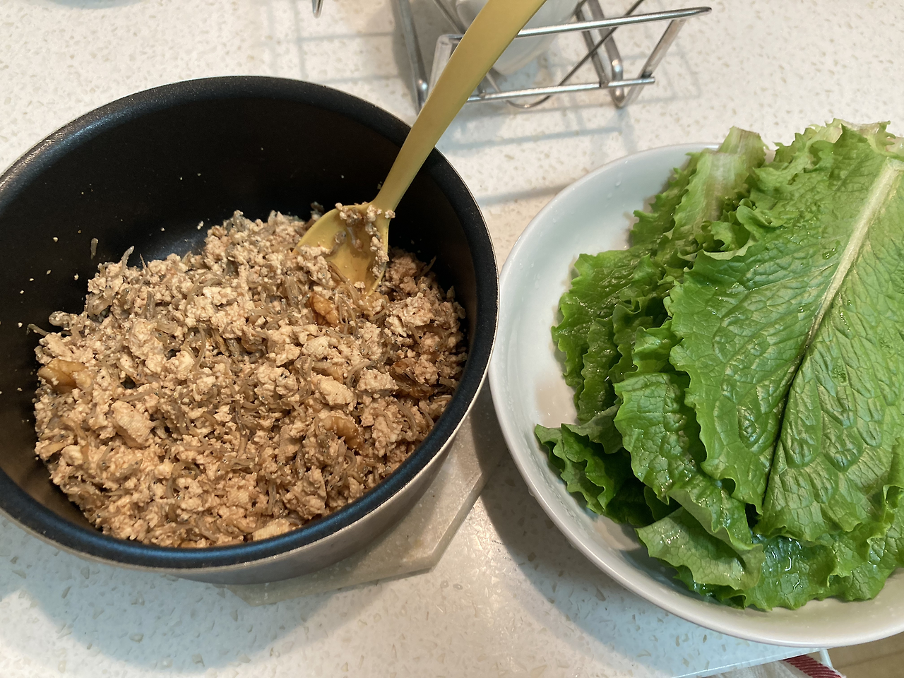 상추를 좋아하는 편은 아니지만 야채를 먹기 위해 일단 주문한다. 잎채소는 금세 시들기 때문에 울며 겨자 먹기로 꾸역꾸역 먹게 된다. 그렇게, 며칠 지난 상추가 있는데 영 이리보고 저리 봐도 먹기 싫다. 고기 사다가 구워서 쌈 싸 먹을까 하다가, 붉은 고기 텔로미어 어쩌고 인터넷 글을 찾아본 후 정신 차리고... 고기 대용이 뭐가 있을까? 참치? 참치캔은 기름 국물이 있어서 싫다.